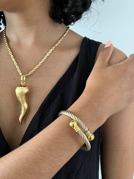 in 18k yellow and white gold. A bold, textured and polished chunky style you’ll love without feeling
