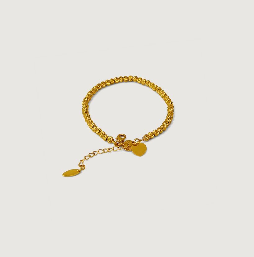 Adorned with a series of 18k gold plated beads, and a rich luster which symbolizes protection. You can wear alone, add a charm(s), or layer with other beads for a sophisticated statement.