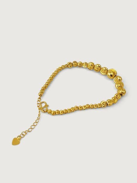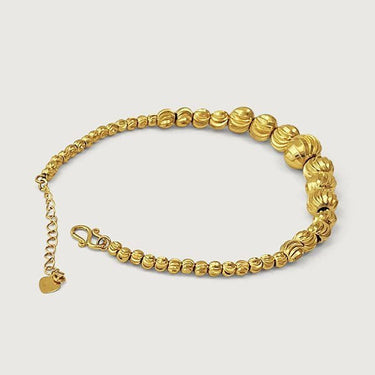 Adorned with a series of 18k gold plated beads, and a rich luster which symbolizes protection. You can
