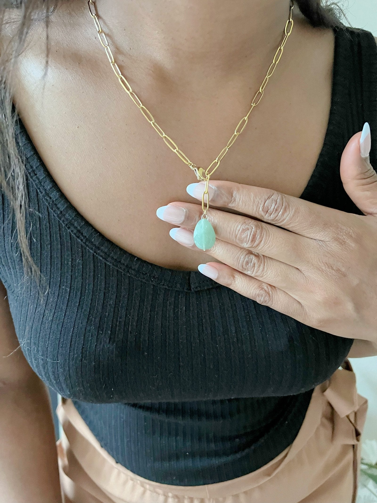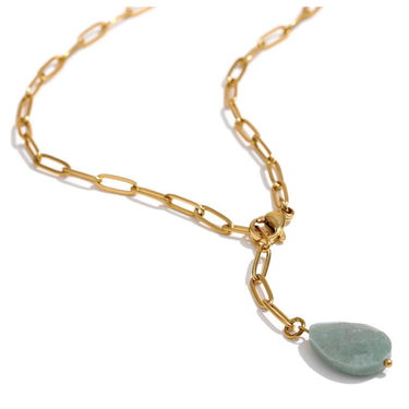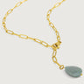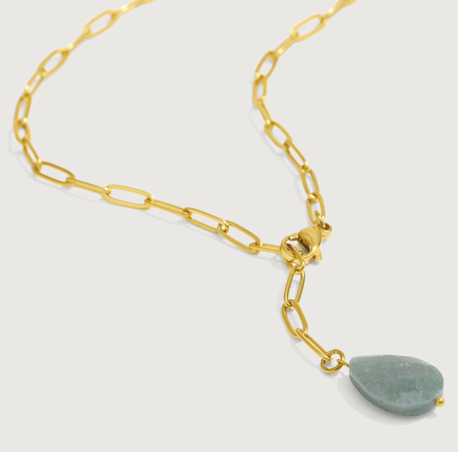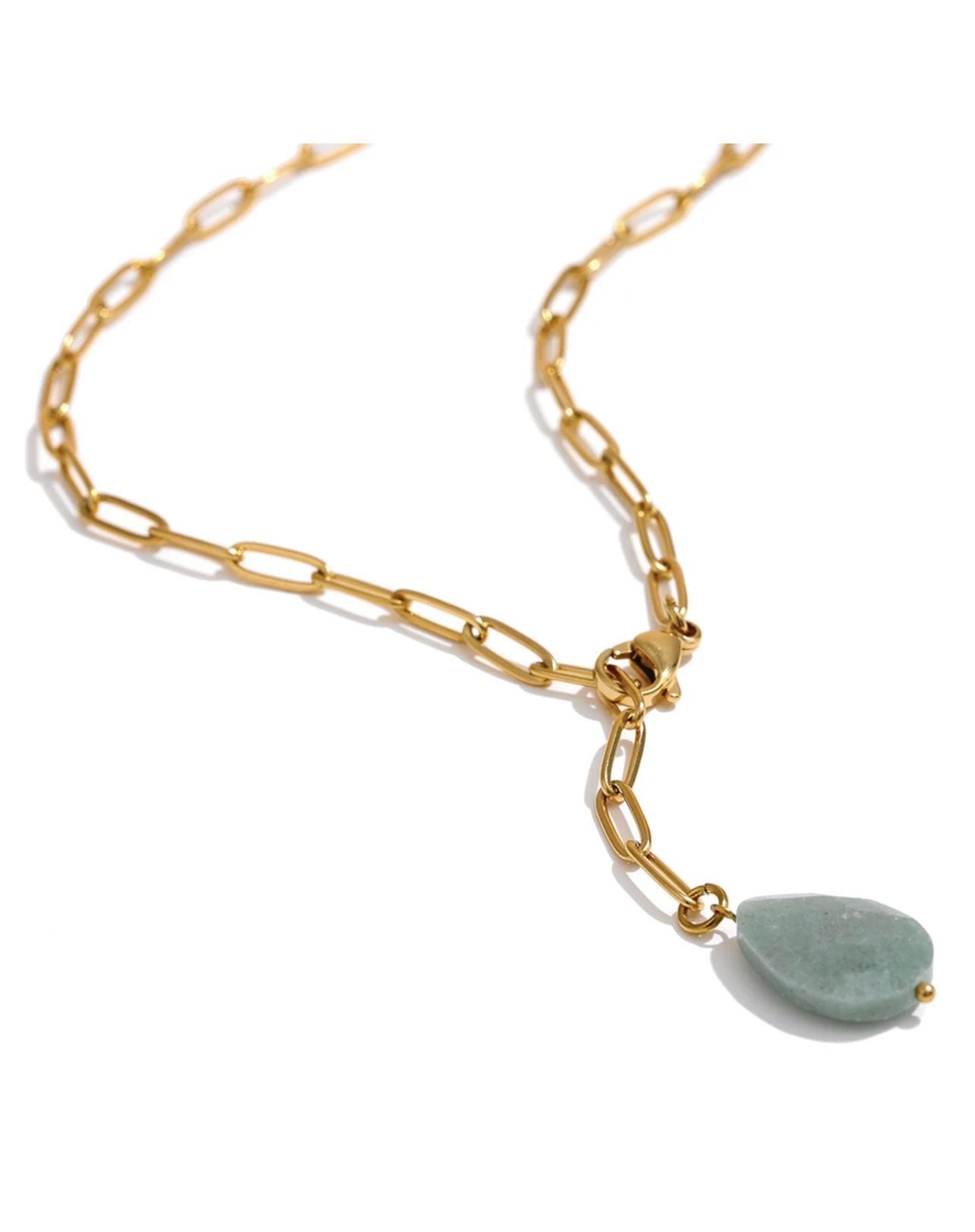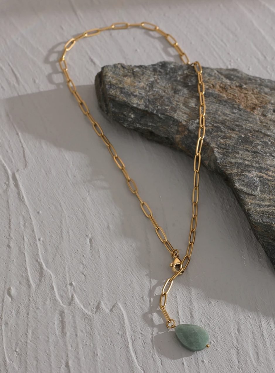 Our Elisa Necklace is the perfect way to show off your unique style! Design features a links chain adorned with an oval shaped diamond cut Agate gemstone pendant. This gorgeous gold plated necklace sets the stage for you to steal the show. Totally great to wear alone or add to your layering stack.