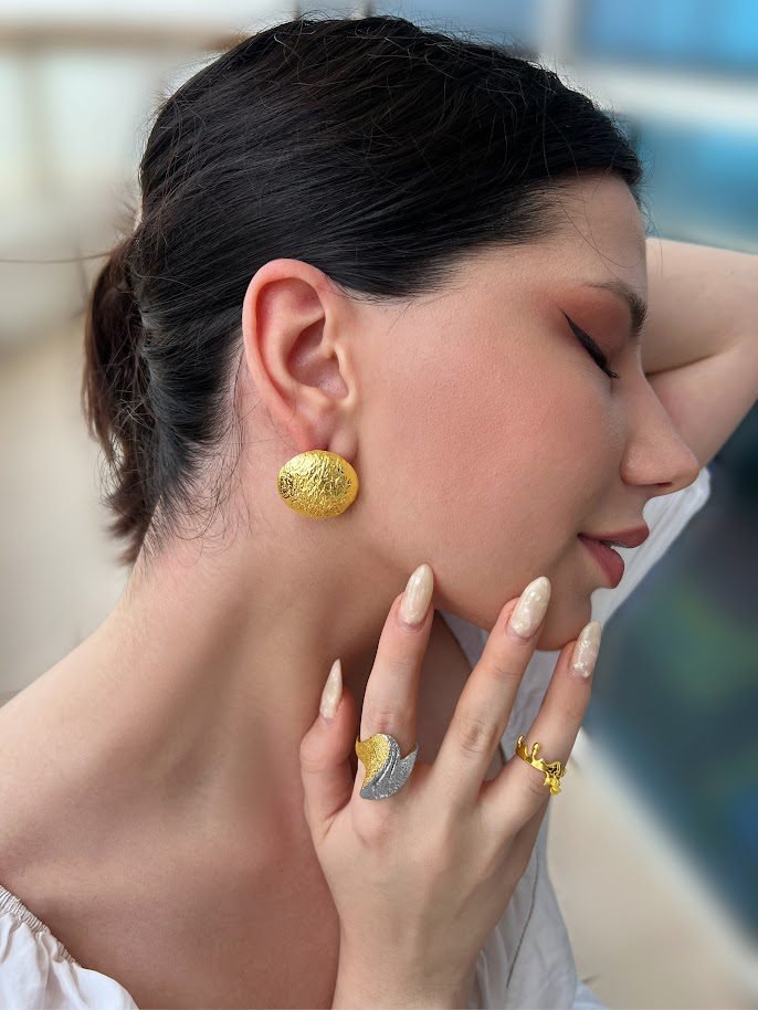 Add a touch of nature-inspired elegance to your look with these Lava Floral Earrings. Designed from premium stainless steel and plated with radiant 18K gold, these floral stud earrings feature a delicate lava flower design that exudes charm and sophistication. The intricate petal details of the flower create a unique texture, adding depth and dimension to the earrings, while the gold finish elevates their overall appeal. Available in silver and gold with floral design.