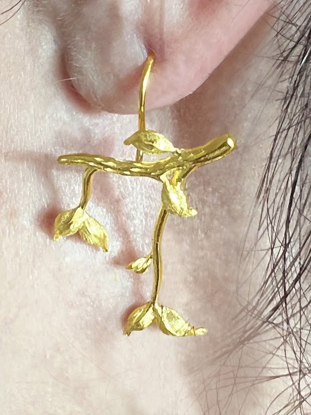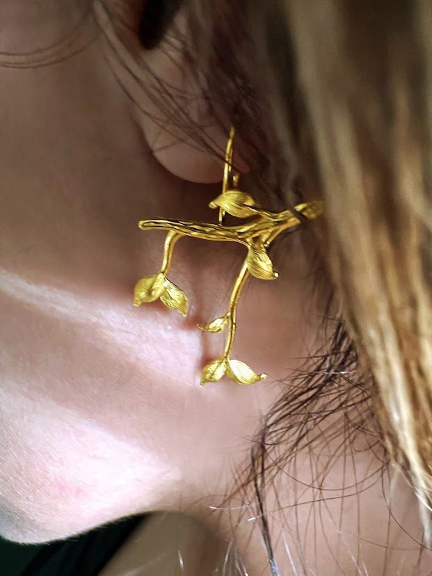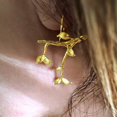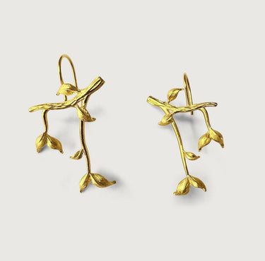 Inspired by the natural world, this earring is designed to capture the fluid movement of leaves, and flowers. These Dangle earrings are crafted with 18k gold plating on sterling silver. It features a contrast of high polish and brush finishes which will make you stand out for sure. So, enjoy all of the compliments when wearing.