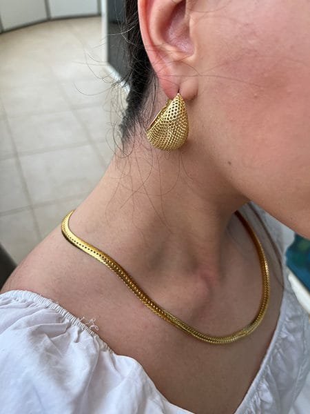 Designed to look like a netty loop, the Moona earrings is plated with 18k gold to give it the rich lustrous
