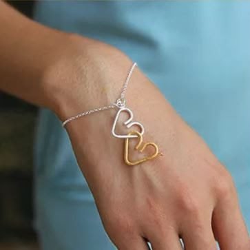Featuring sterling silver, this two tone chain bracelet captures the utilitarian spirit of classic American design. The simple, evocative double Heart design celebrates the spirit of love. The Dua Hearty Bracelet will make a great gift from you, and to you.