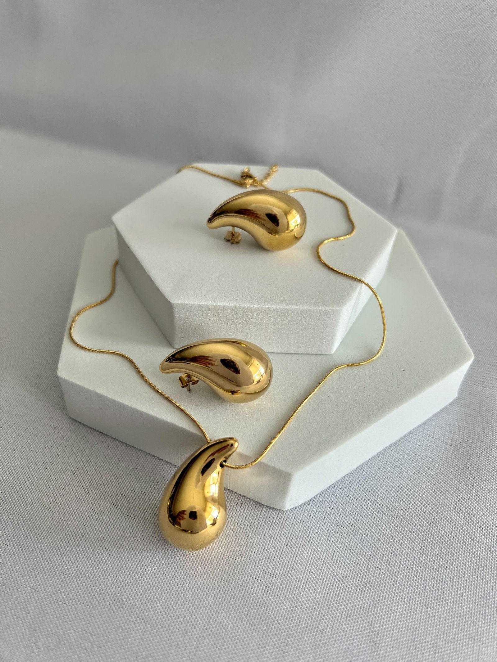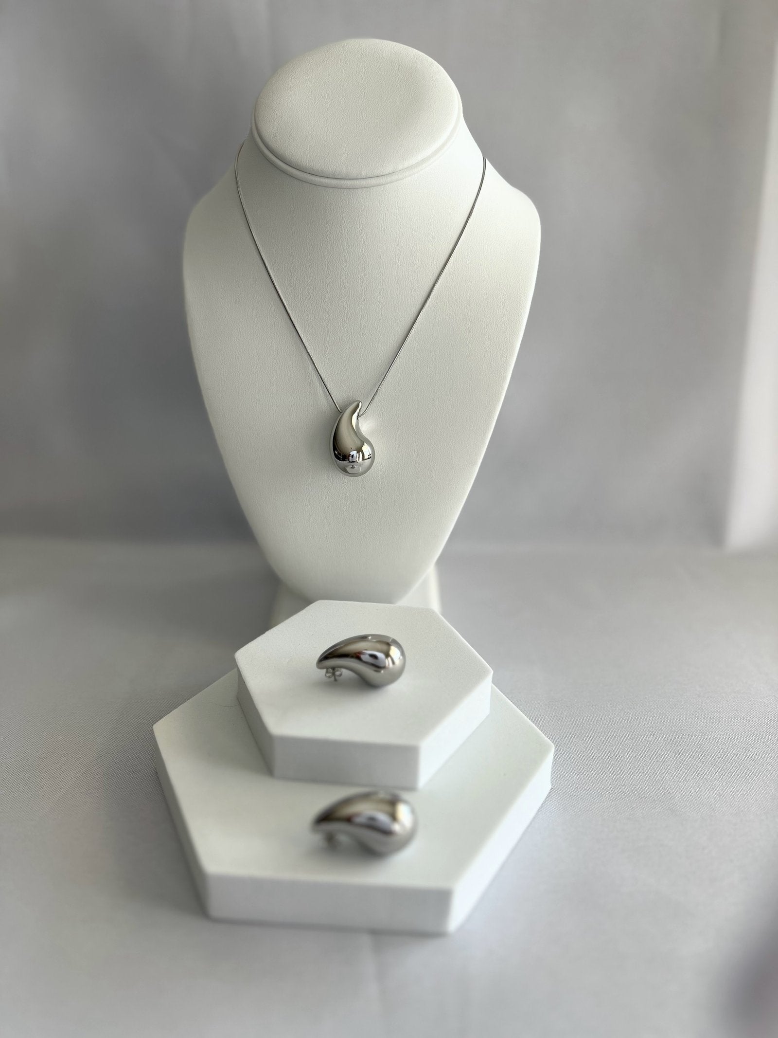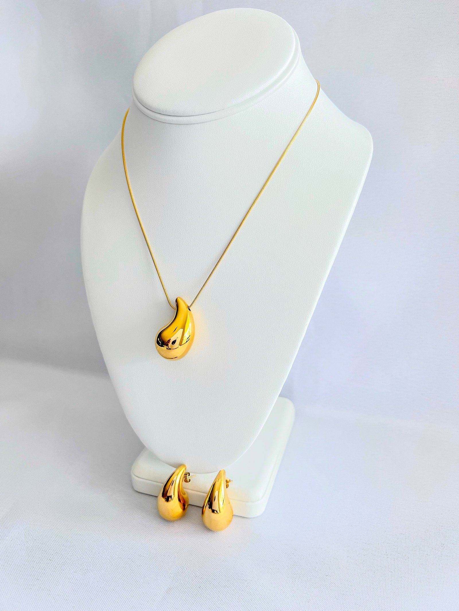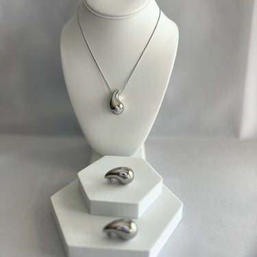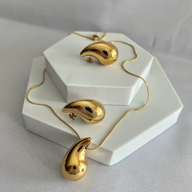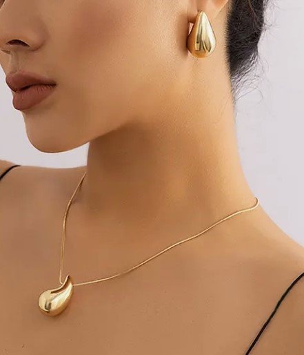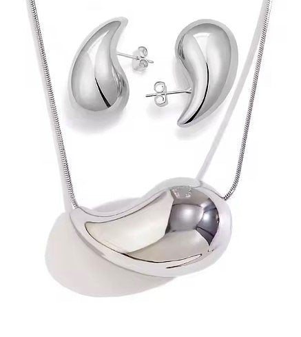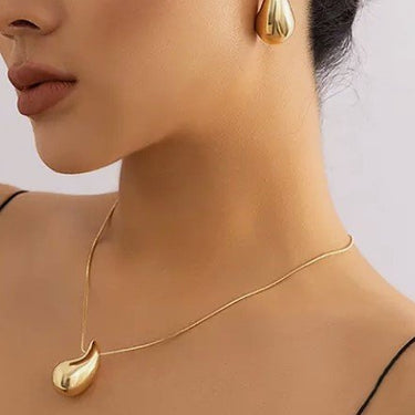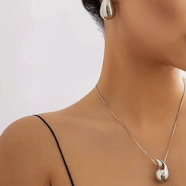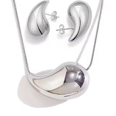 Elevate your style with the timeless elegance of our Classic Ela H-Teardrop Necklace & Earrings Set. Featuring the necklace and earrings, this matching set blends simplicity and sophistication with its minimalist teardrop design, available in a choice of gleaming silver or 18k gold-plated finishes. The necklace, crafted from durable stainless steel, offers a 16-inch chain with a 2-inch extender for the perfect fit, while the lightweight earrings are designed for comfort and daily wear. This versatile set is perfect for both everyday style and special occasions, making it a stunning addition to any jewelry collection or a thoughtful gift for someone special.