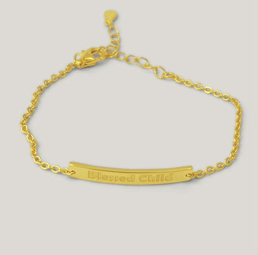 This handcrafted kids’ bracelet is an engravable collection. The perfect gift to express your love. Customize this refined ID bracelet and wear it with grace and ease. Printed words: Blessed Child