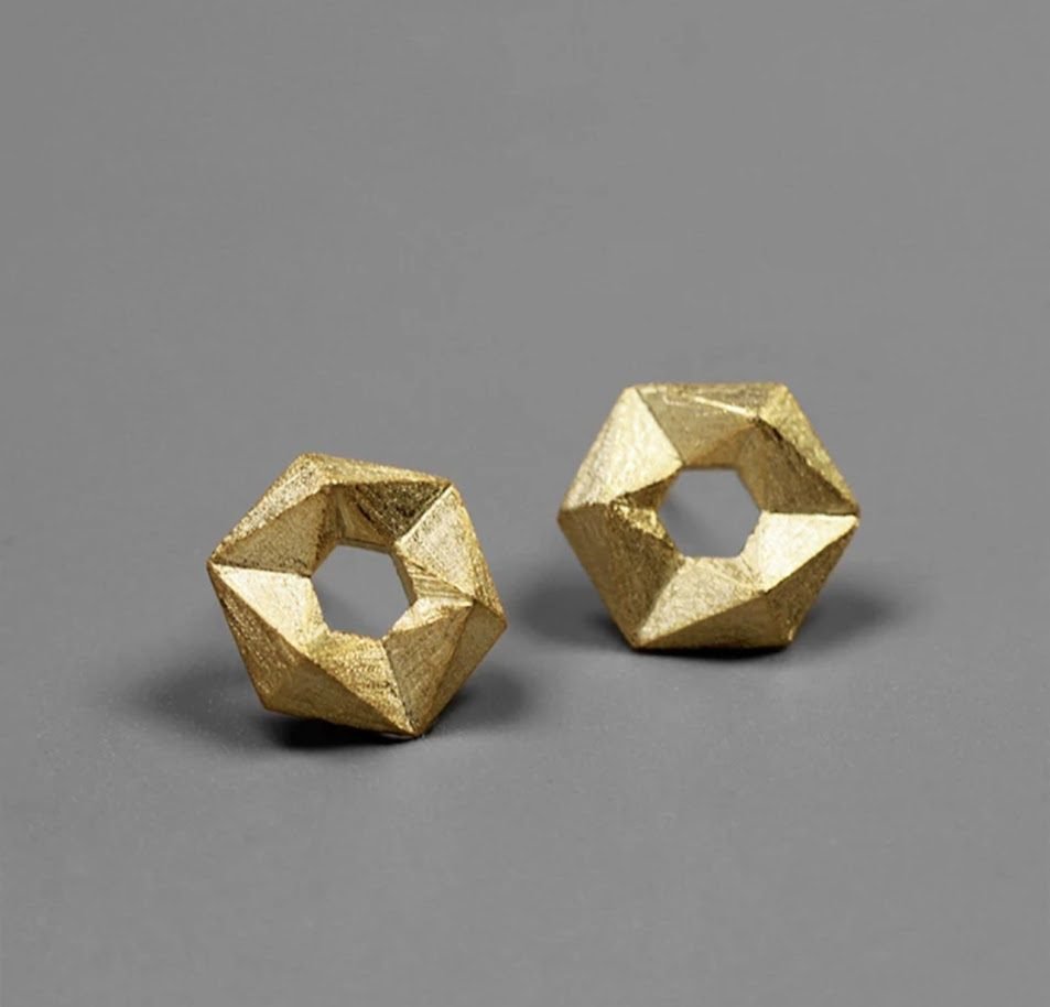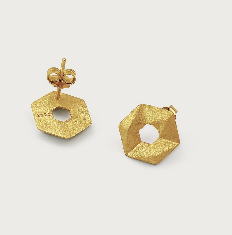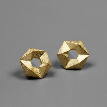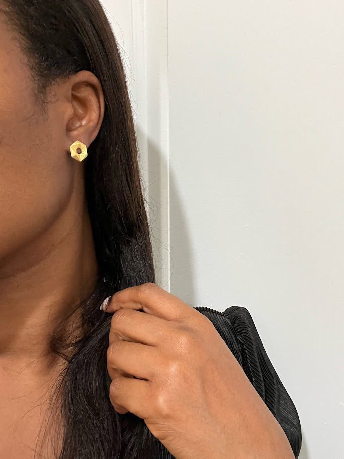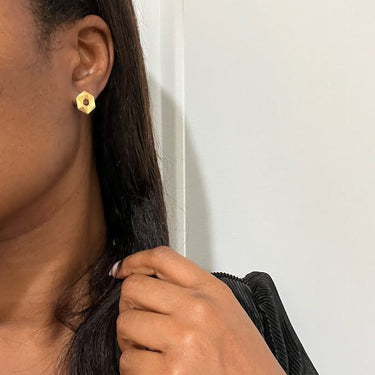 Featuring geometric shaped stud earrings with brush gold touch, this small pair of earrings is a statement piece that matches your everyday style.