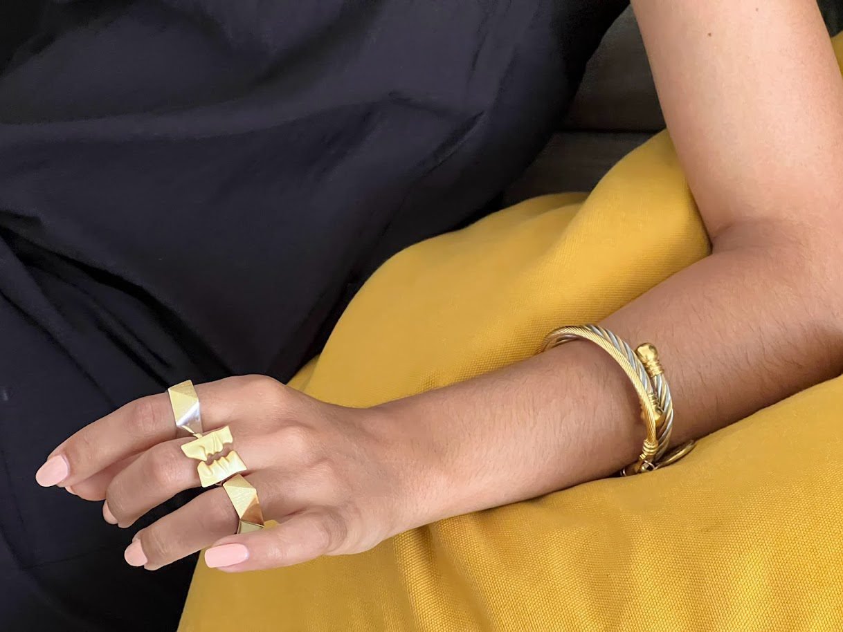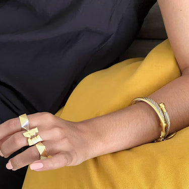 The Chunky sculptured open ring one of our bold gold collections is uniquely textured with the perfect mix of a brush and smooth finish and you can adjust its size due to its open design. Perfect for that bold statement and everyday style look. This is sure to catch the light and standout in your ring stack.
