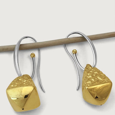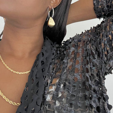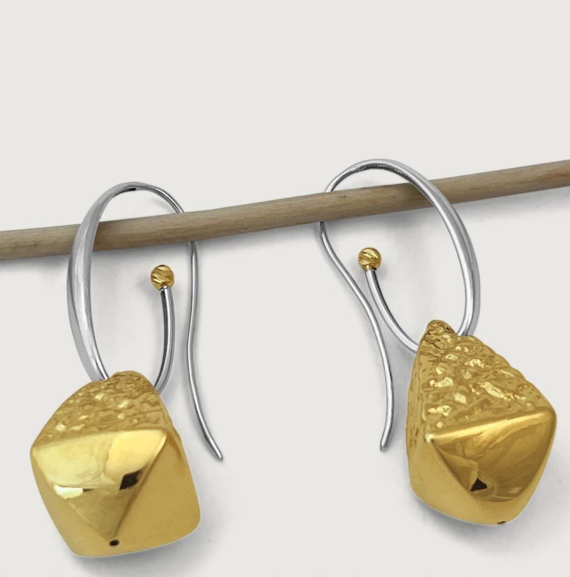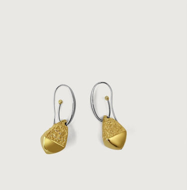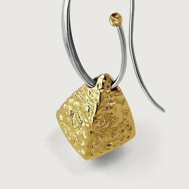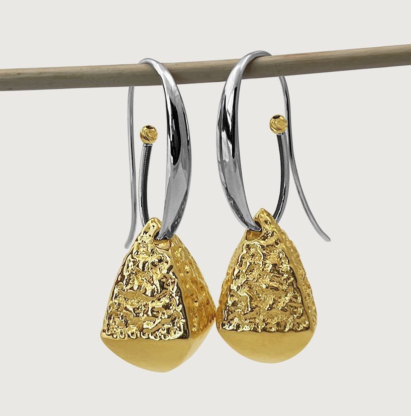 Two-tone Oval Hammered Drop Earrings in 18k Gold
