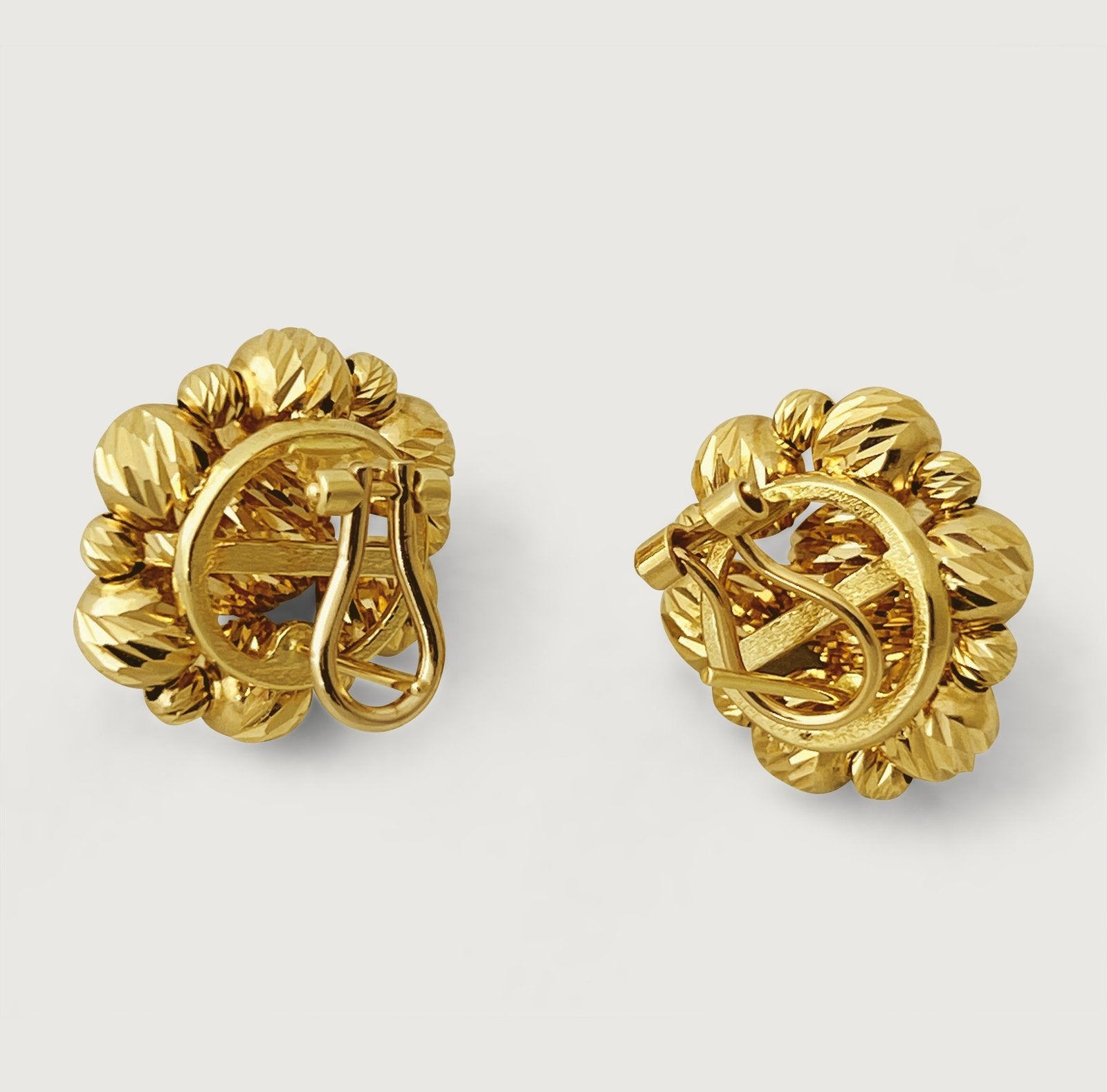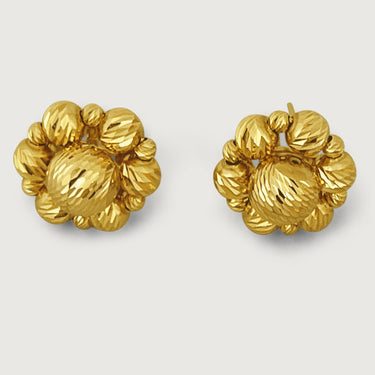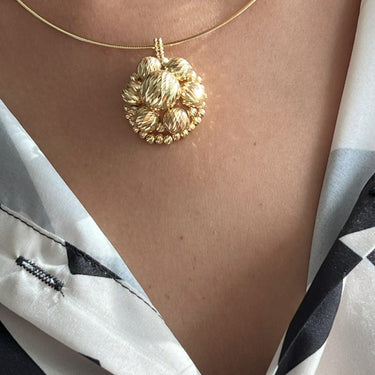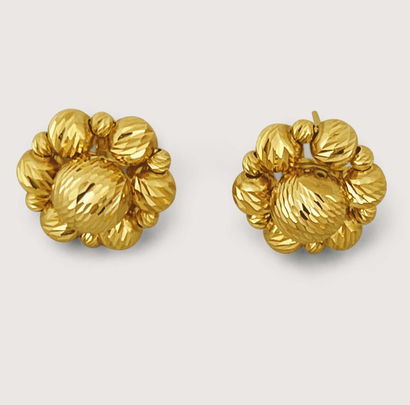 Enhance your elegance with this stunning 18 karat solid gold earrings and pendant set. Each piece is meticulously crafted, featuring a unique textured design that radiates sophistication. The earrings showcase a cluster of lustrous gold spheres, while the matching pendant echoes this exquisite pattern, making this set a perfect choice for occasions or adding a touch of luxury to your everyday style. Please note: set does not include a chain.