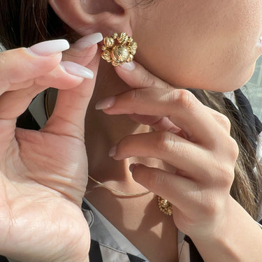 Add a touch of nature-inspired elegance to your look with these Lava Floral Earrings. Designed from premium stainless steel and plated with radiant 18K gold, these floral stud earrings feature a delicate lava flower design that exudes charm and sophistication. The intricate petal details of the flower create a unique texture, adding depth and dimension to the earrings, while the gold finish elevates their overall appeal. Available in silver and gold with floral design.