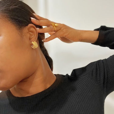 Add a touch of nature-inspired elegance to your look with these Lava Floral Earrings. Designed from premium stainless steel and plated with radiant 18K gold, these floral stud earrings feature a delicate lava flower design that exudes charm and sophistication. The intricate petal details of the flower create a unique texture, adding depth and dimension to the earrings, while the gold finish elevates their overall appeal. Available in silver and gold with floral design.