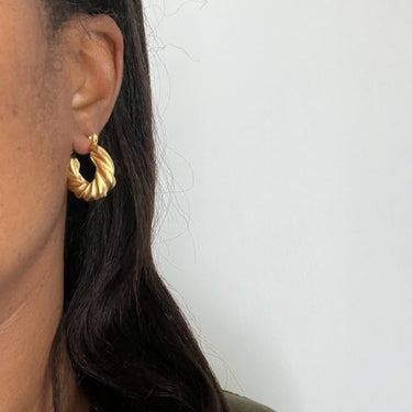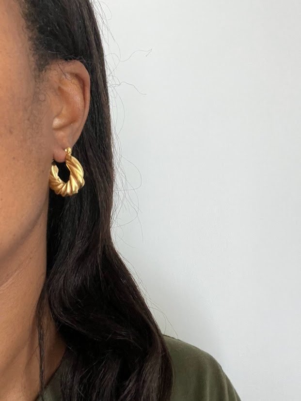 Vintage-inspired, textured firm croissant huggies. The earring created to bring out the style and elegance in you. Perfect to wear alone or add to your everyday stack to take your look from day to night.