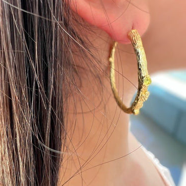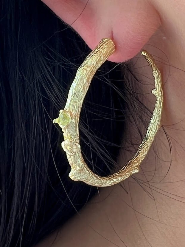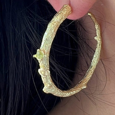 Vibrant, unique, and adorned with gemstones, our coveted Peridot Woody Hoops are one of a kind and gives you the freedom to curate any ear stack, any time.