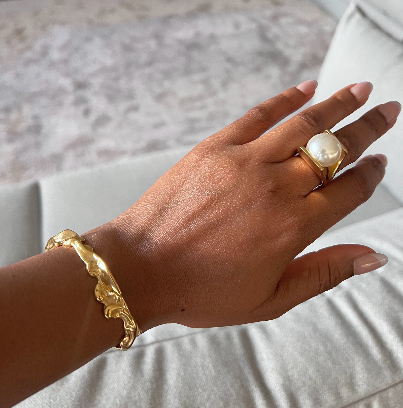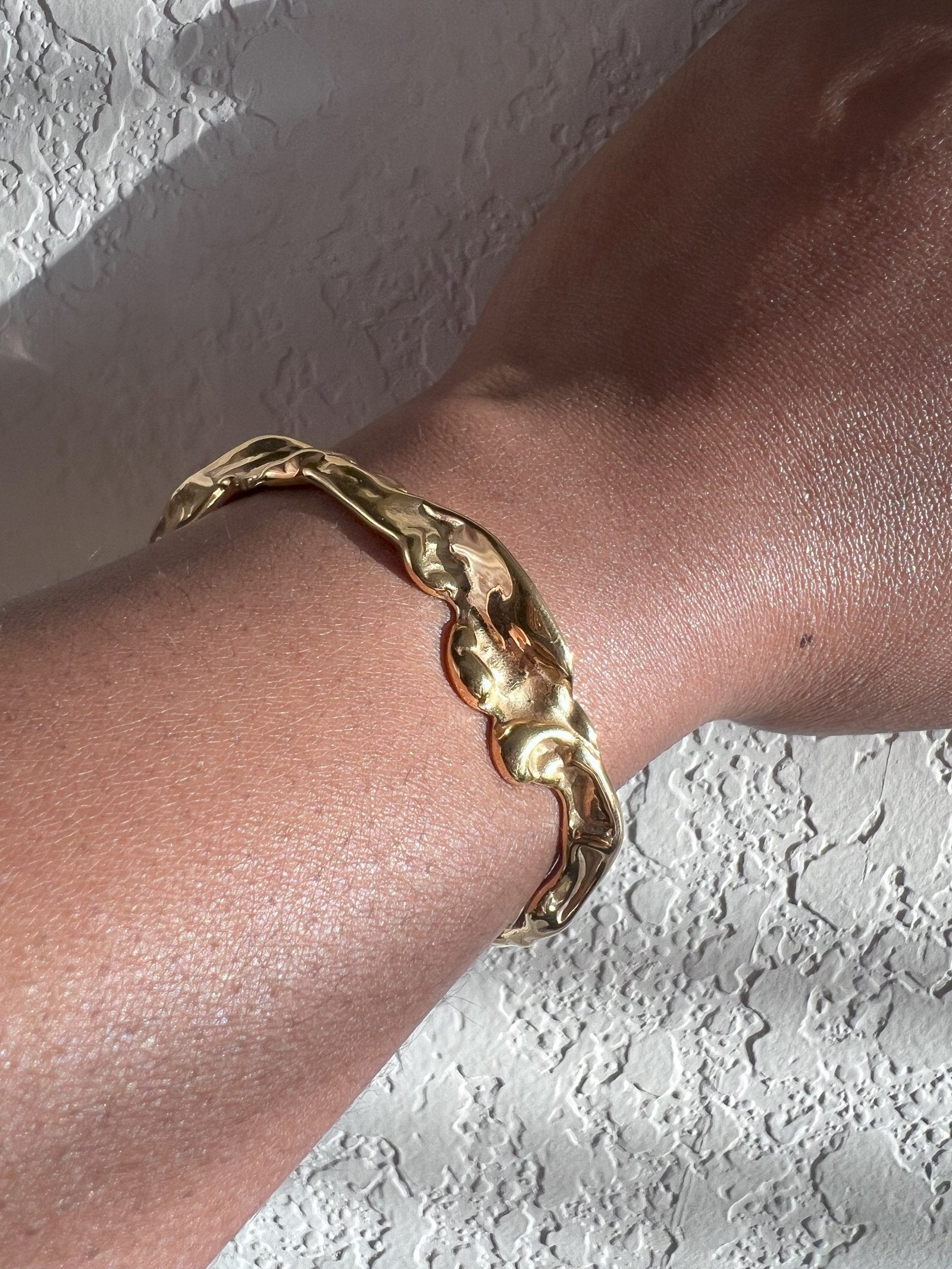 Irregular Textured Open Cuff Bangle Bracelet