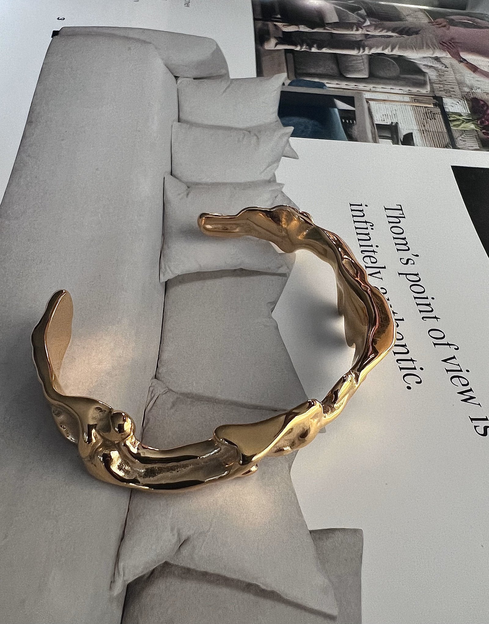 Show off your fashion-forward style when you wear this 18k gold plated over stainless steel modern and unique style irregular shaped cuff bangle. Go sleek and sophisticated whether you wear it alone or add to your stacking game.