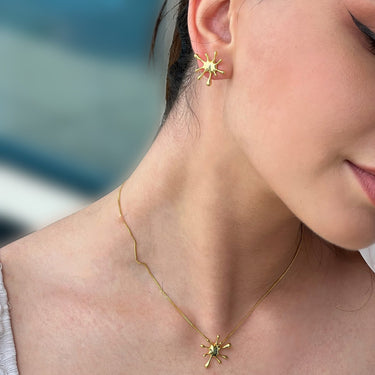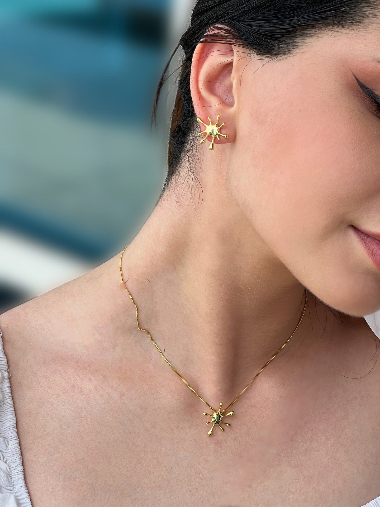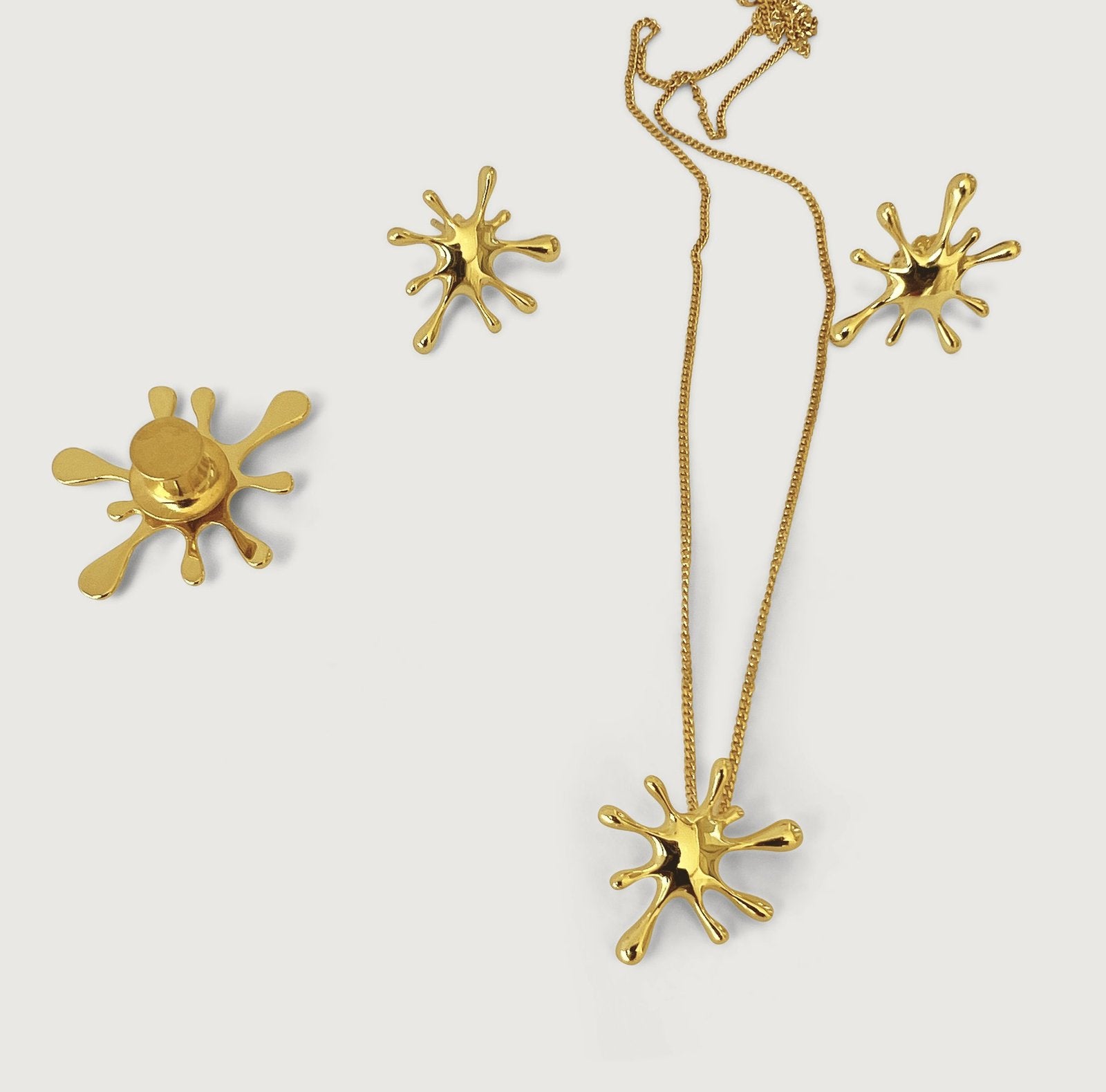 These Splash Muse Stud Earrings, Chain/Necklace with pendant and brooch set are beautifully and uniquely design to make your style stand out. They are crafted with 92.5 percent sterling silver. Wear alone as a set, mix and match, or add to your stacking game.
