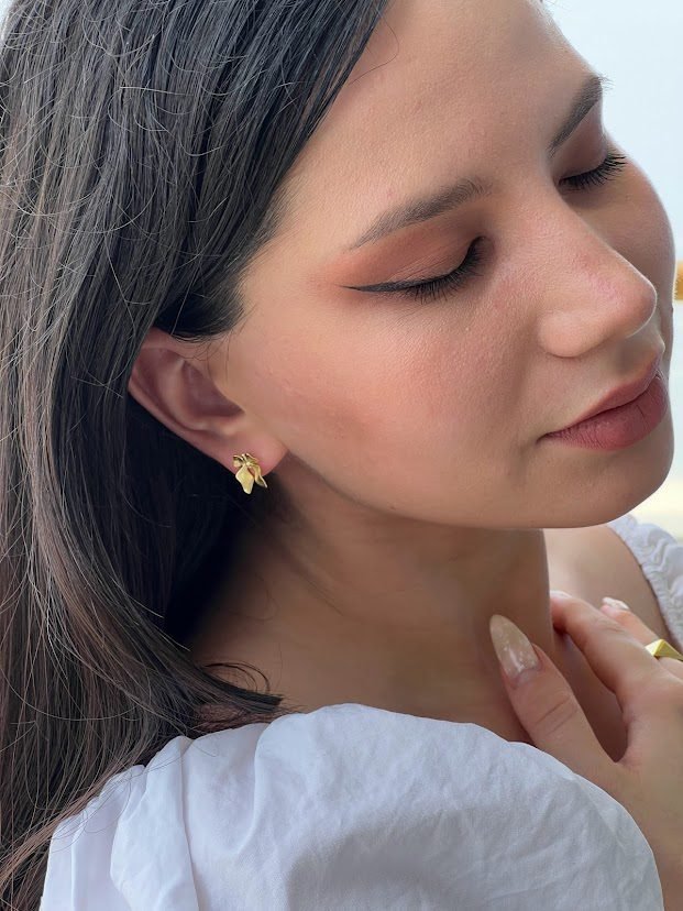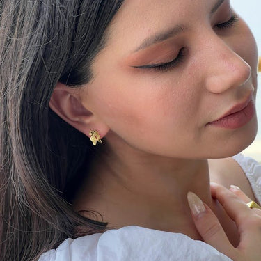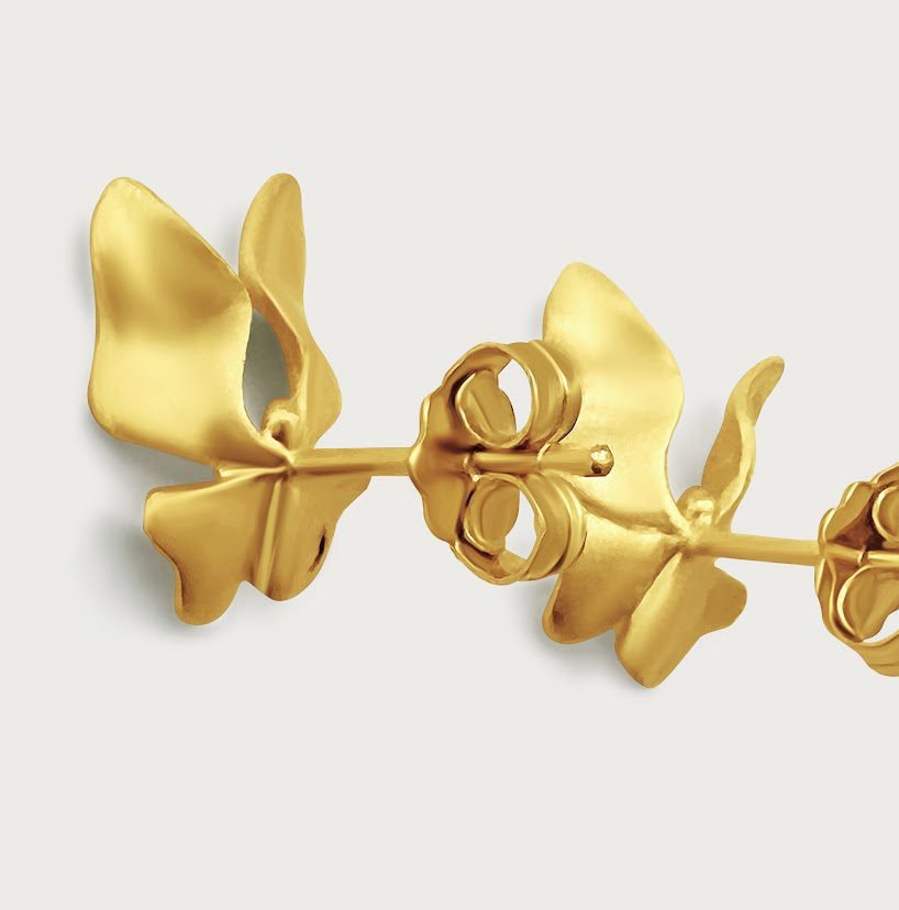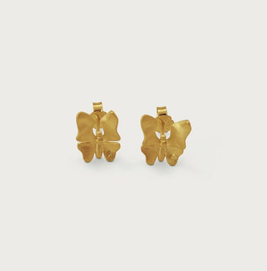 Inspired by nature, our Golden Butterfly stud earrings with a lustrous brush finish, is sure to fit in perfectly with your style. Wear them on their own as a statement pair or partnered with multiple sterling silver studs for maximalist style.