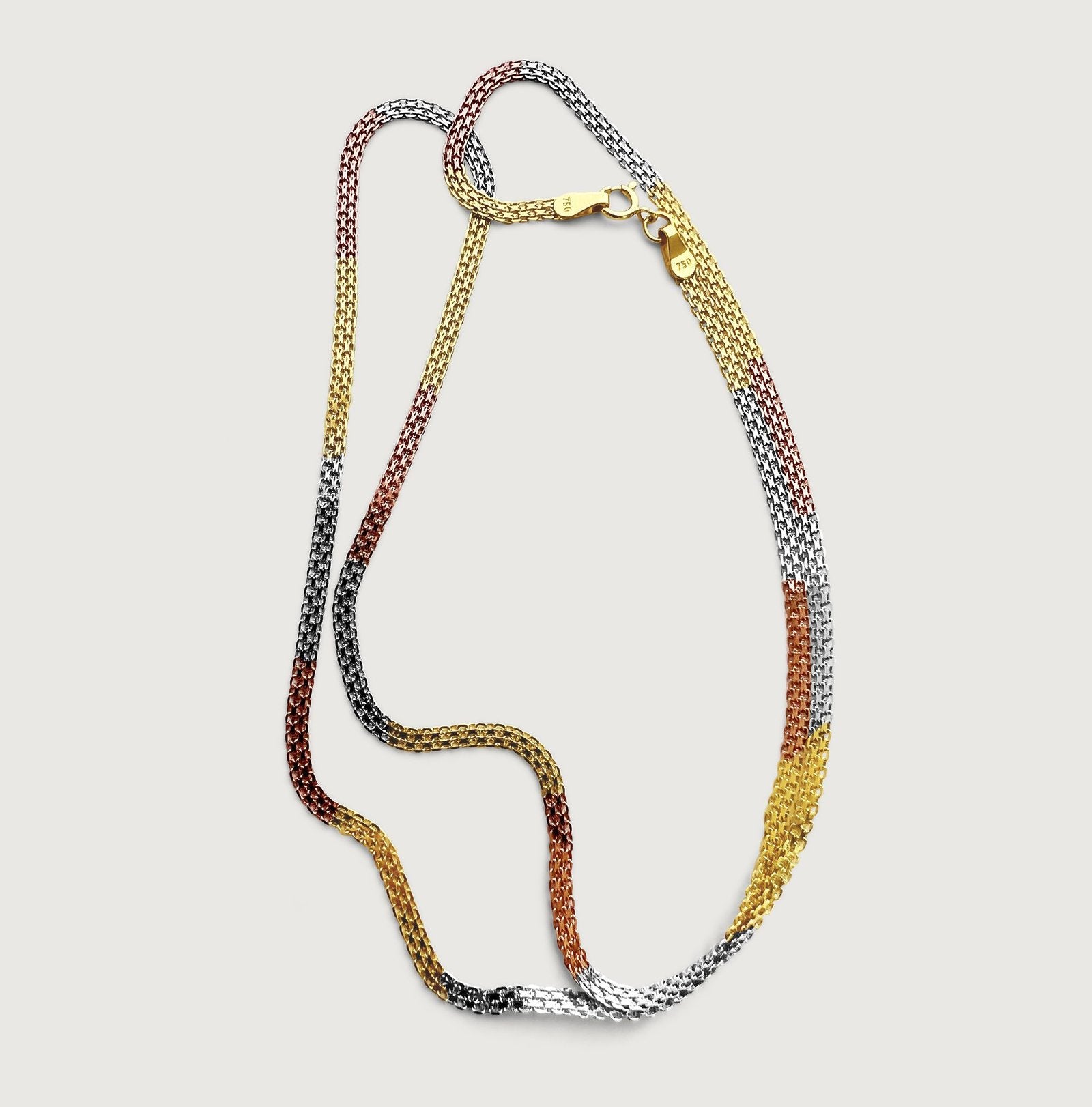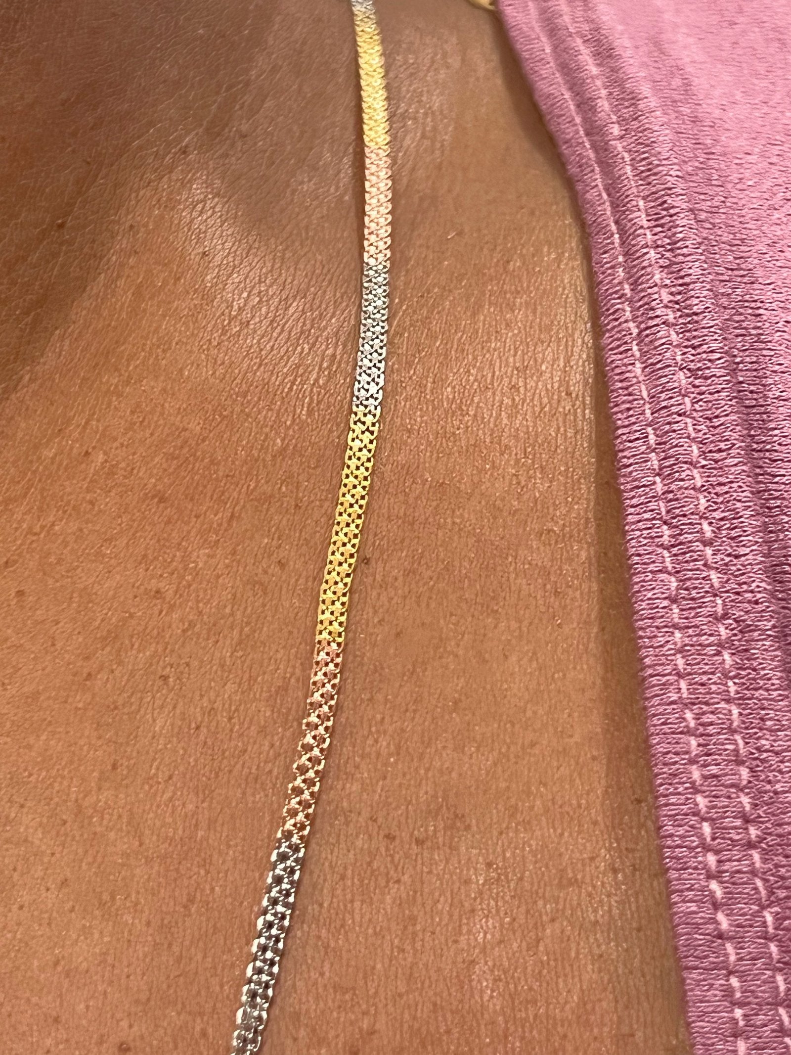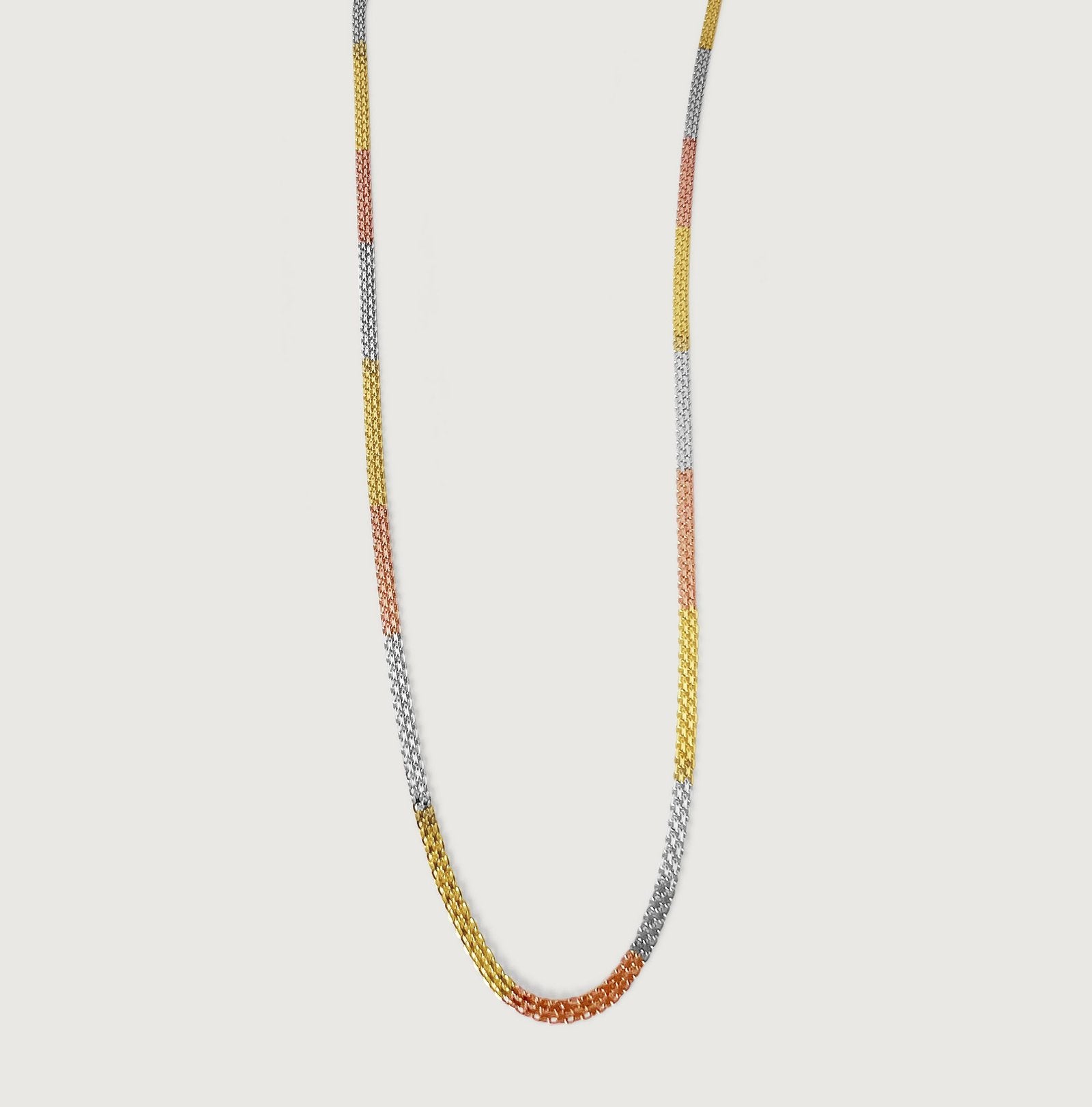 Show off your fashion-forward style when you wear this multicolor (white, Rose gold, & yellow) 18k gold modern and unique style necklace. Go sleek and sophisticated whether you wear it alone, with a pendant charm, or add to your stacking game.