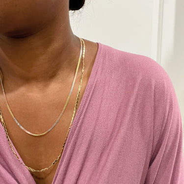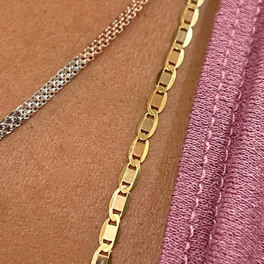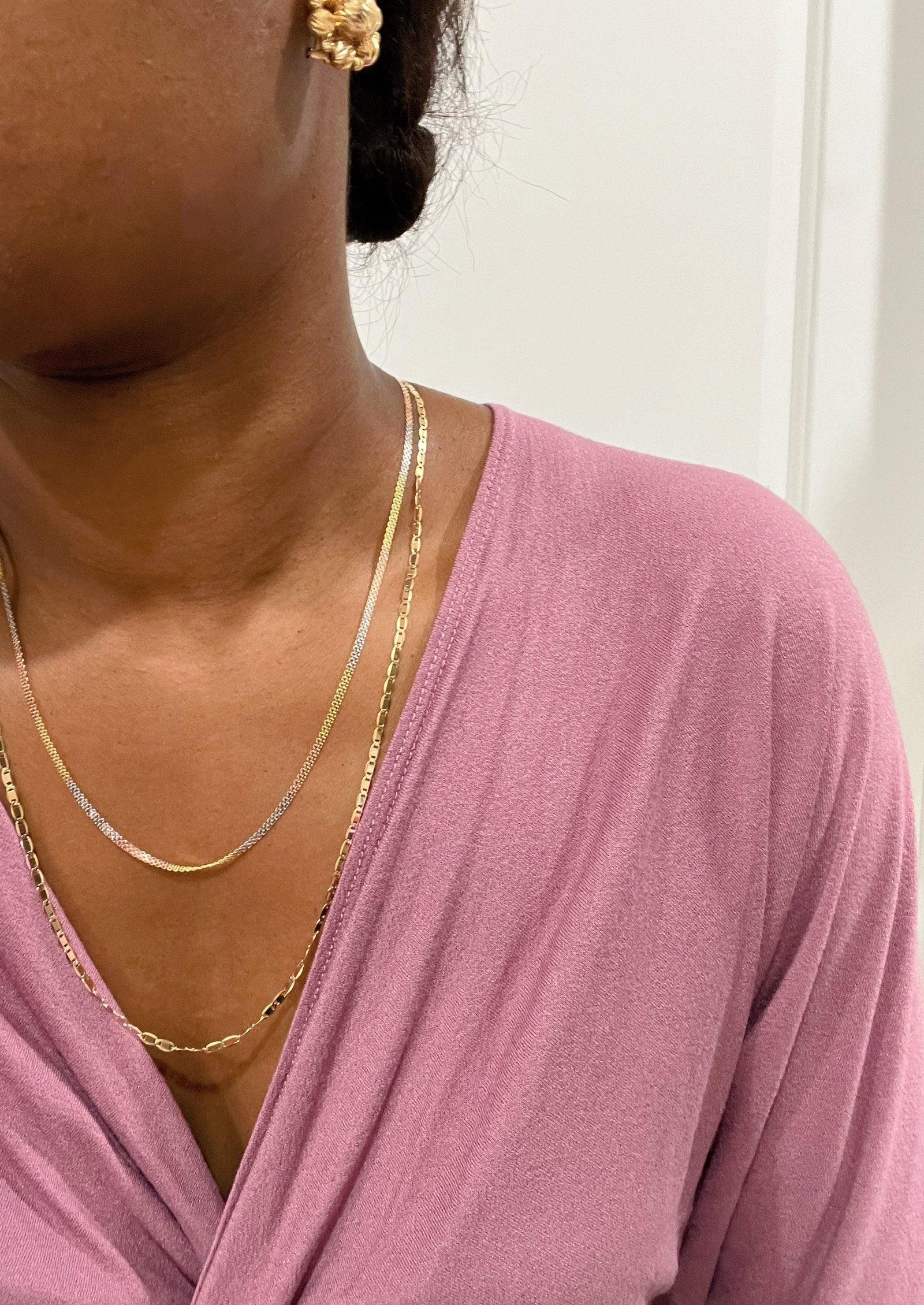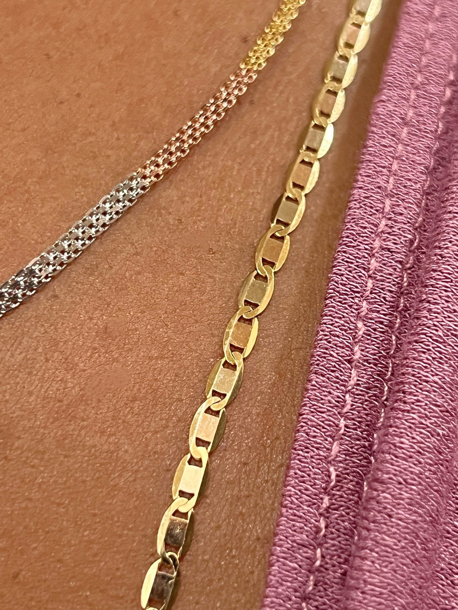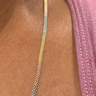 Show off your fashion-forward style when you wear this multicolor (white, Rose gold, & yellow) 18k gold modern and unique style necklace. Go sleek and sophisticated whether you wear it alone, with a pendant charm, or add to your stacking game.