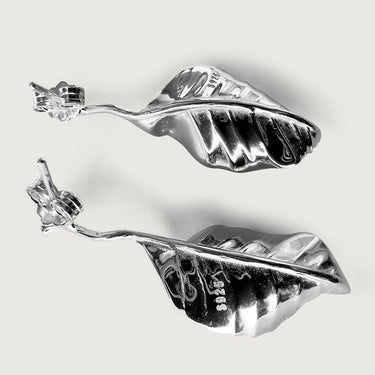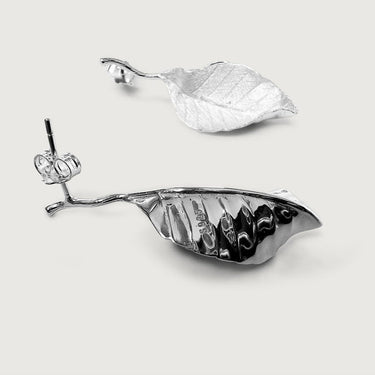 Autumn Long Leaf Stud Earrings in Sterling Silver