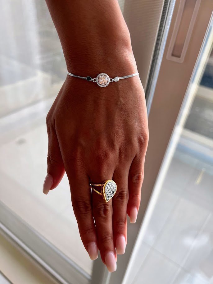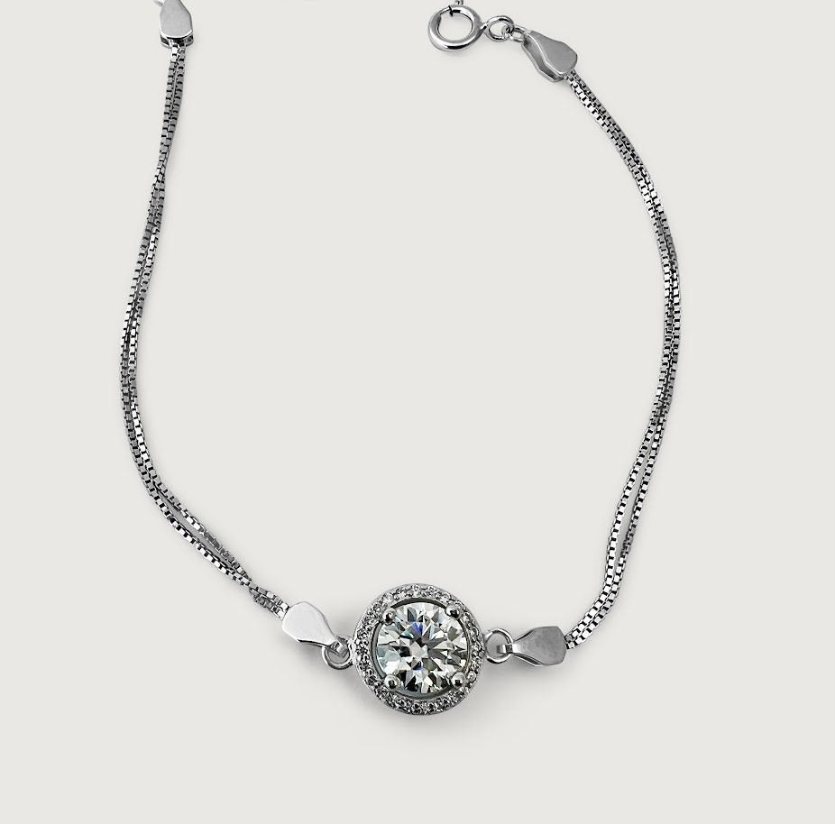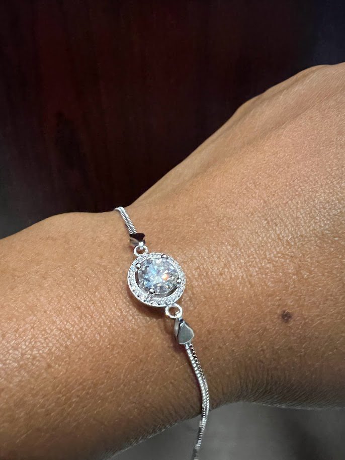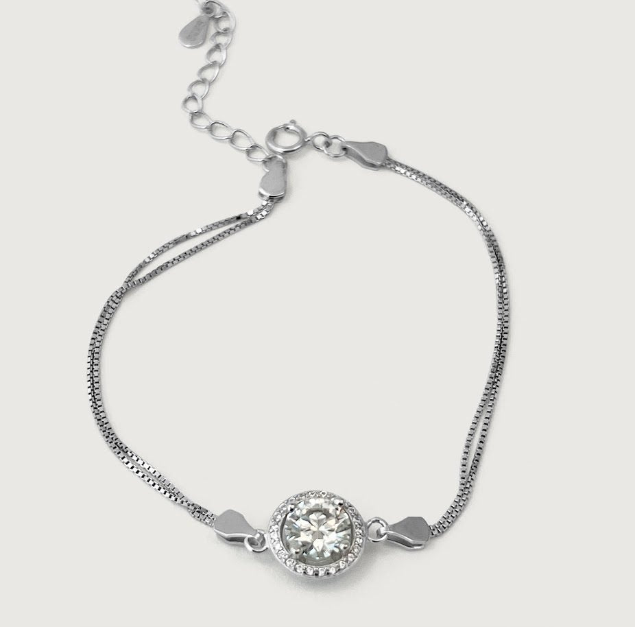 A striking cut D Moissanite diamond bracelet on sterling silver. This piece is effortlessly elegant for every day.