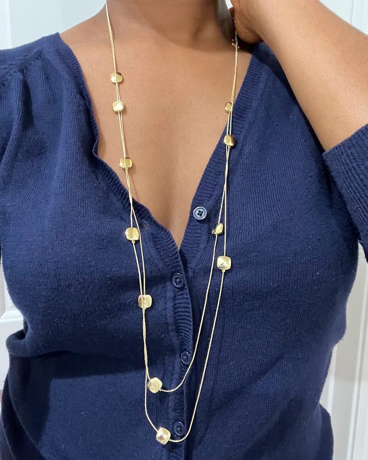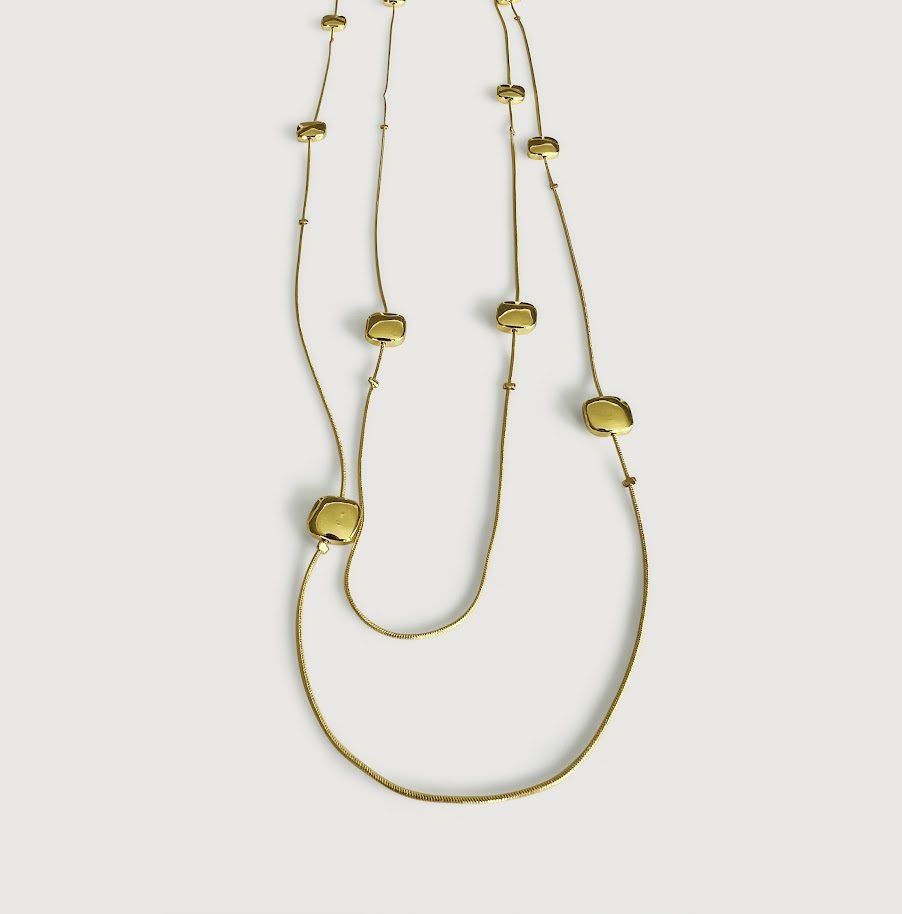 Designed with comfort, style and everyday wear in mind. This geometry inspired, two lengths necklace is unique and stylish. Wear alone or add to your neck stack.