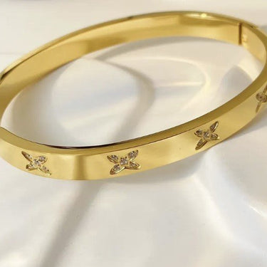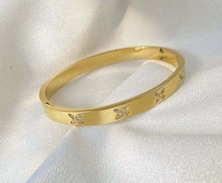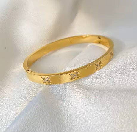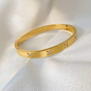 The Cross Radiance Bracelet is a refined piece designed to elevate any look. Crafted from premium titanium steel and plated in luxurious 18k gold, this bracelet features a series of sparkling zircon stones set in a stylish cross X pattern. Its durable, tarnish-resistant finish ensures long-lasting shine, while the intricate diamond-inspired detailing adds a sophisticated touch of elegance. Perfect for both casual wear and formal occasions, the Radiant Cross X Bracelet is a versatile accessory that seamlessly combines modern fashion with timeless grace.