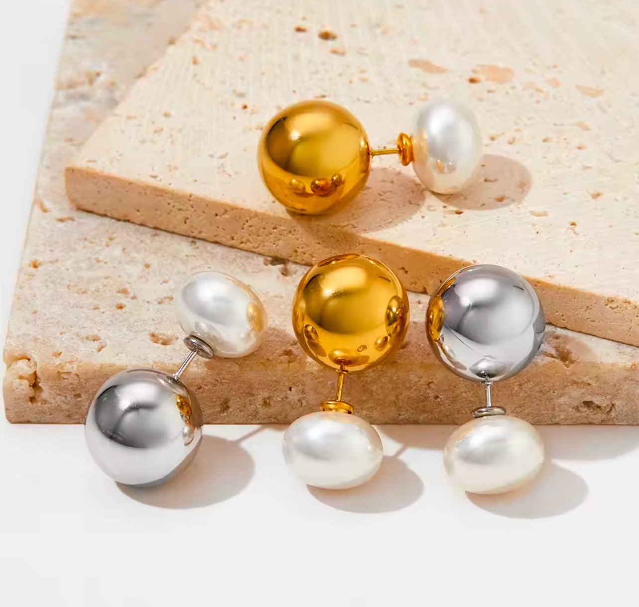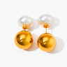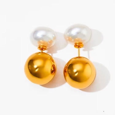 Add versatile elegance to your collection with the Versa Pearl Double Ball Earrings, designed to be worn in two stunning ways. One side features a classic pearl stud, while the other showcases a sleek 18k gold-plated stainless steel ball, creating a modern, minimalist design. These earrings allow you to switch up your look, offering both timeless sophistication and contemporary style. Waterproof and non-tarnish, they are crafted for durability and designed to last, making them perfect for everyday wear or special occasions.