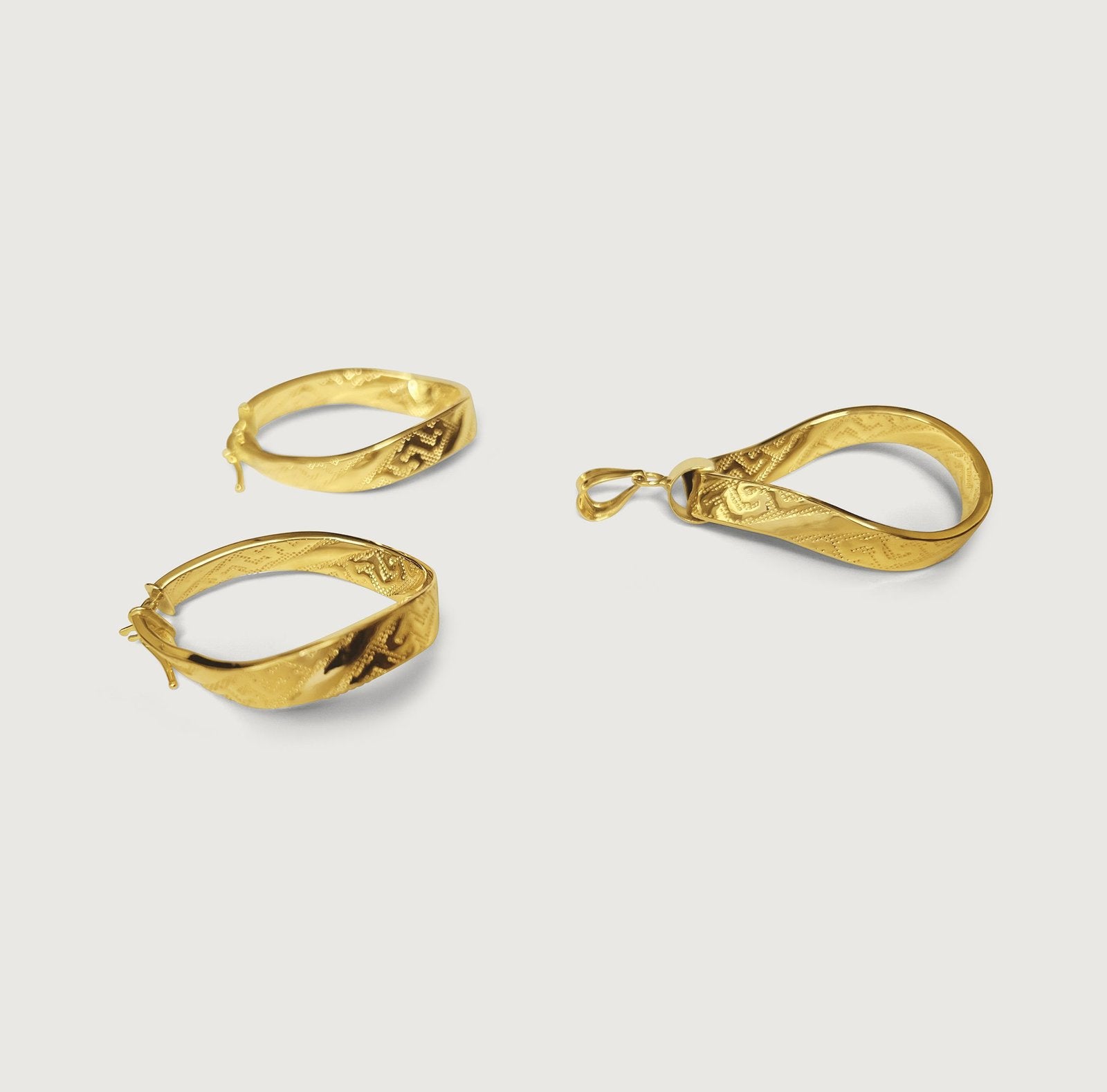 Hoop Muse Earrings & Pendant Set in 18Kt Gold