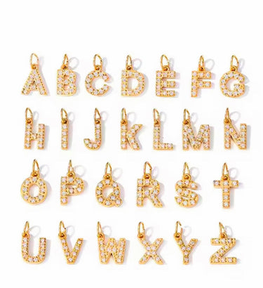 This Radiant Initial Charm Necklace is a personalized statement piece that combines classic charm with a sparkling twist. Each pendant is crafted from high-quality stainless steel, plated in 18k gold, and adorned with dazzling rhinestones that catch the light beautifully. With the full alphabet available, choose the letter that’s meaningful to you or gift it as a thoughtful, custom piece. Perfect for layering or wearing solo, this initial necklace adds a touch of bling to any outfit, making it an eye-catching accessory for every occasion.