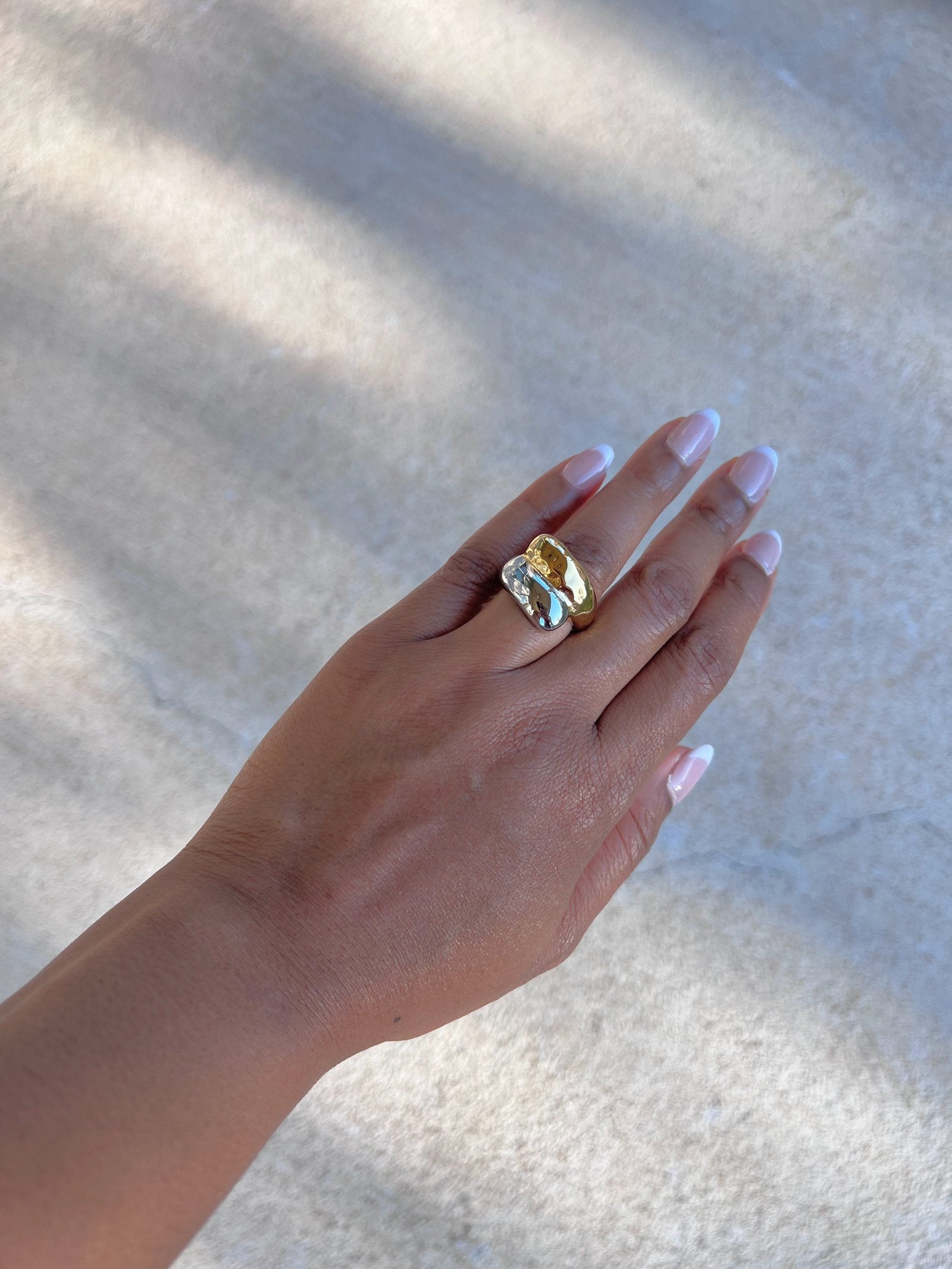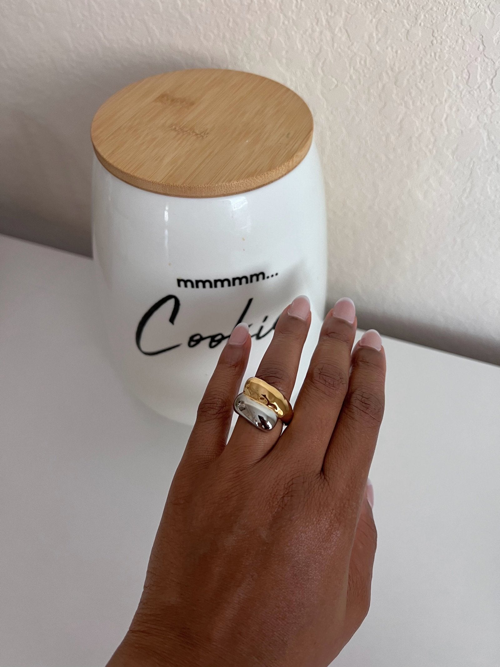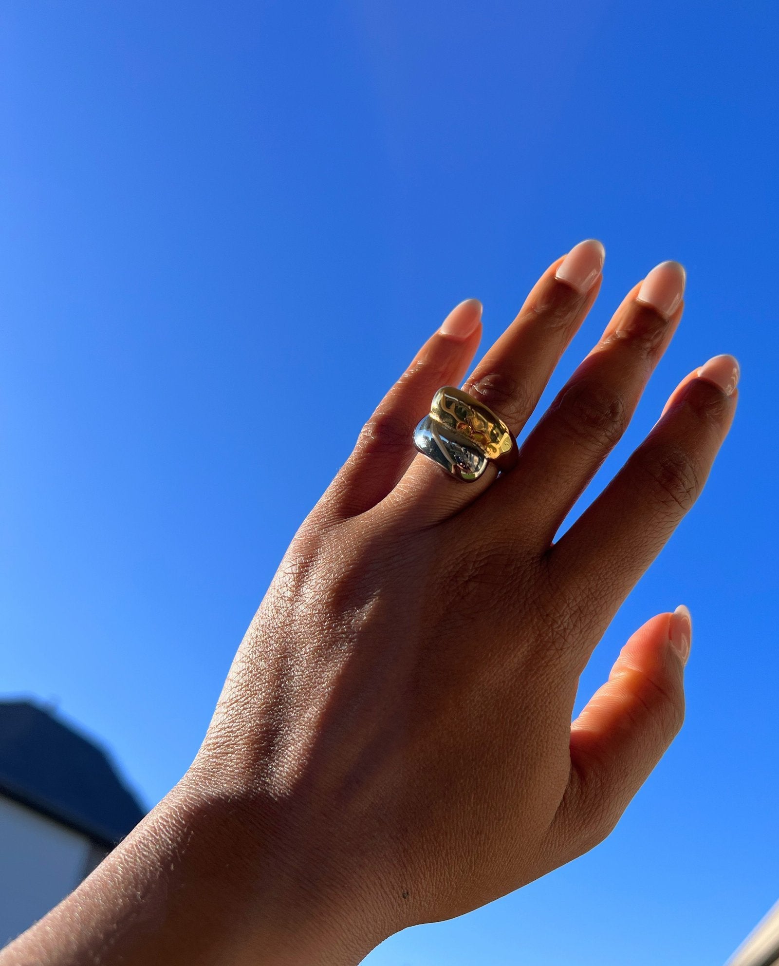 Introducing our stunning 18k gold plated two tone bypass ring- the perfect addition to any jewelry collection. Its design features a unique bypass style, crafted from high-quality stainless steel. The two-tone design adds a touch of elegance and sophistication, making it the perfect accessory for any occasion. Our fashion rings are designed to be both stylish and comfortable, ensuring that you can wear them all day long.