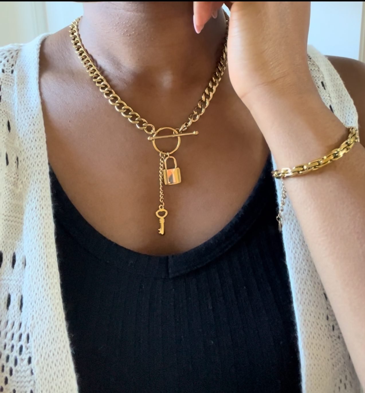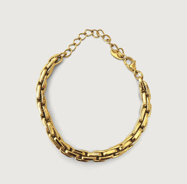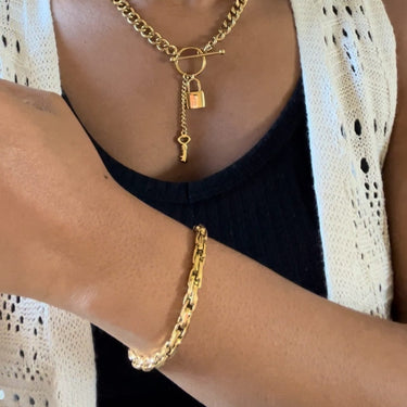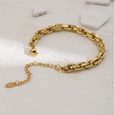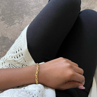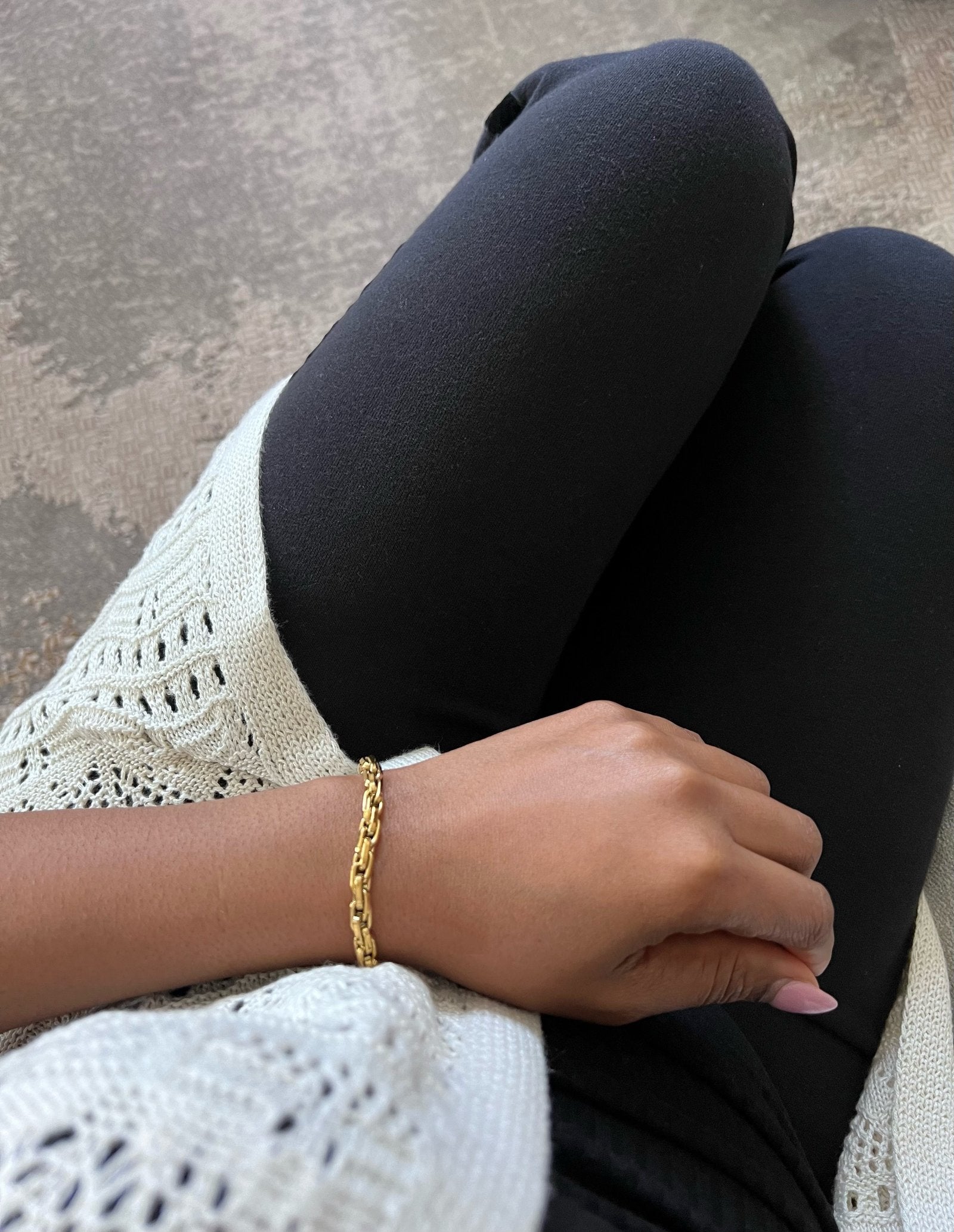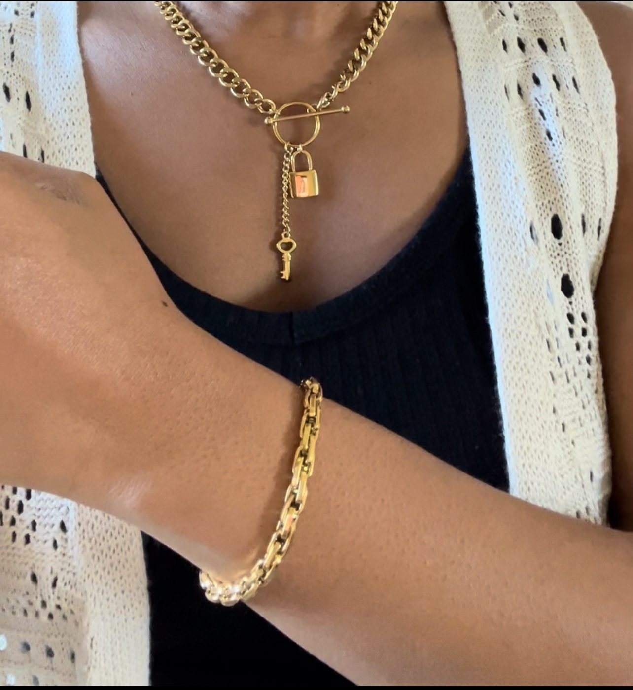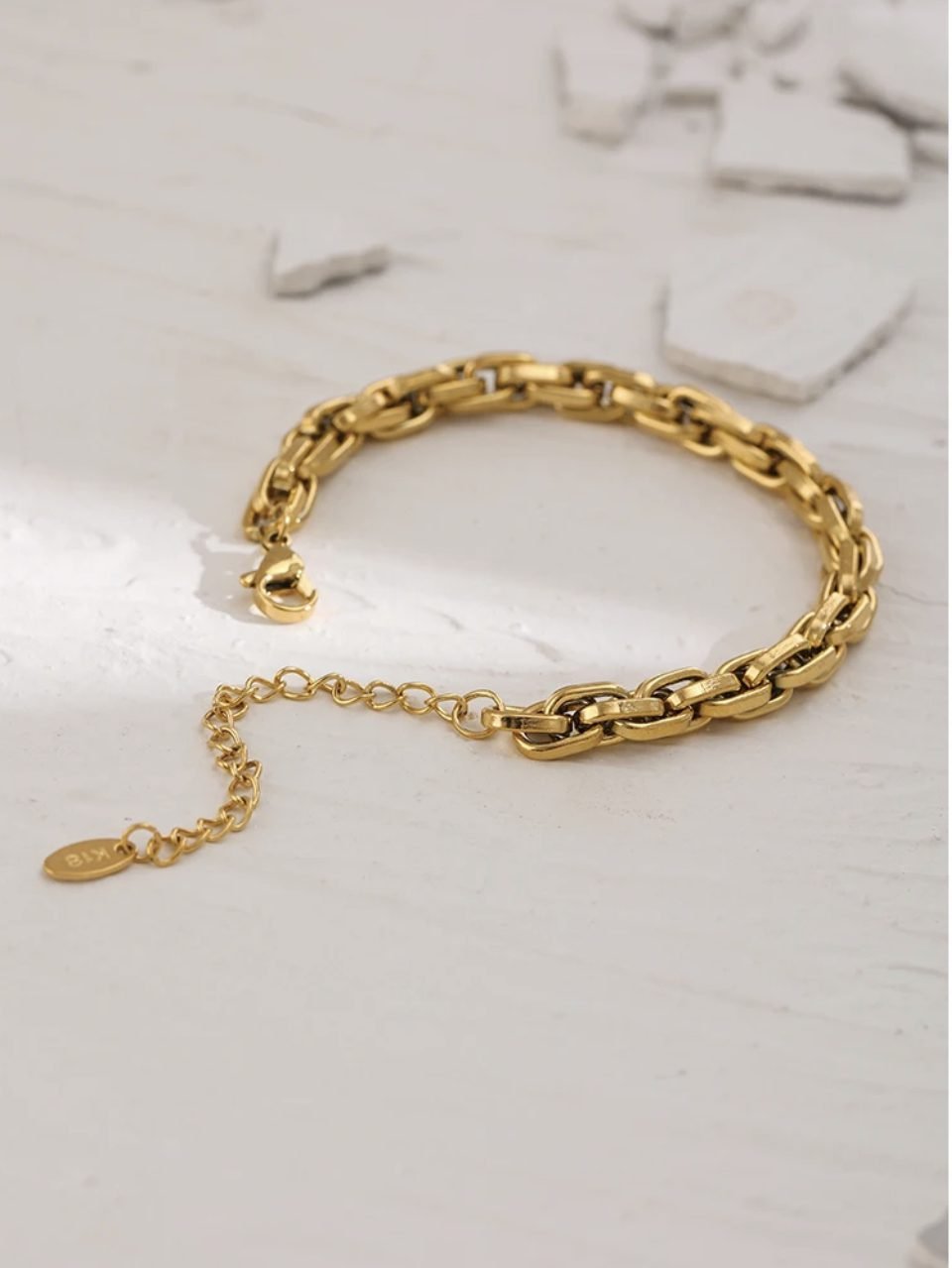 An everyday chain bracelet, inspired by vintage styles. Features thick woven Italian chains that gleams over the wrist. Has plenty of style and polish. Wear it alone of stack it up with bangles and pearl accent charms.