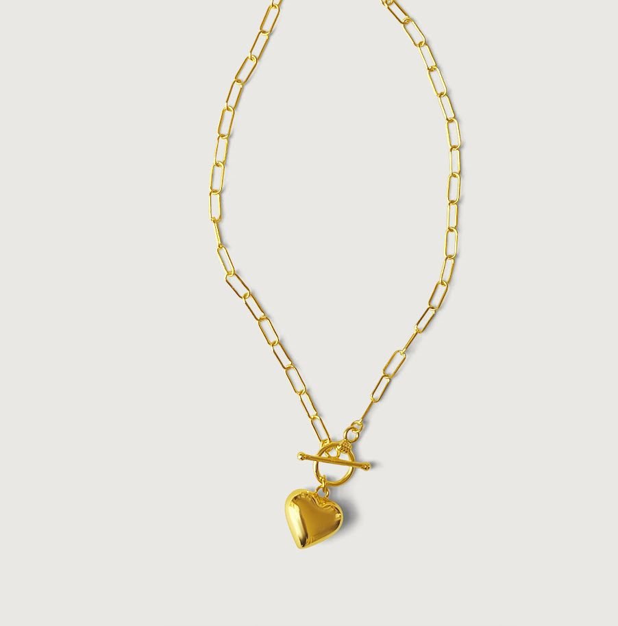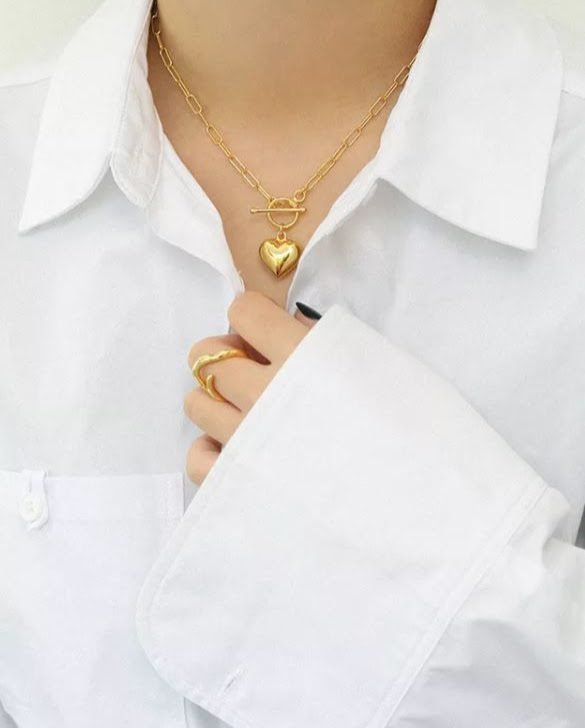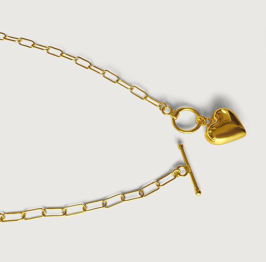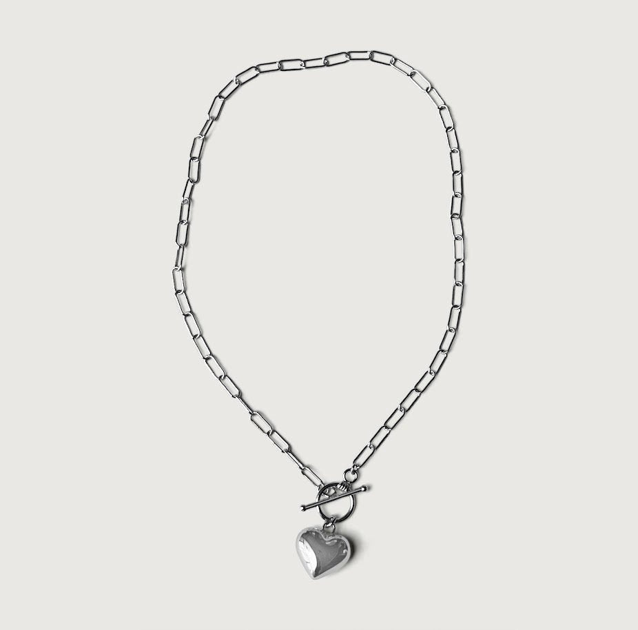 Featuring a design inspired by love and made with love. Heart jewelry is the first choice to express your love friendship and care. So you can gift this to yourself or express love to a loved one. This is sure to send a love message. Necklace is crafted with sterling silver and designed with the paper clip chain that leads to a toggle which keeps the heart tag hanging elegantly on your chest. You can layer this with other chains of choice or wear alone.