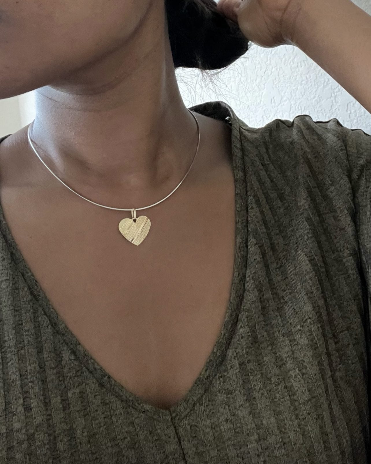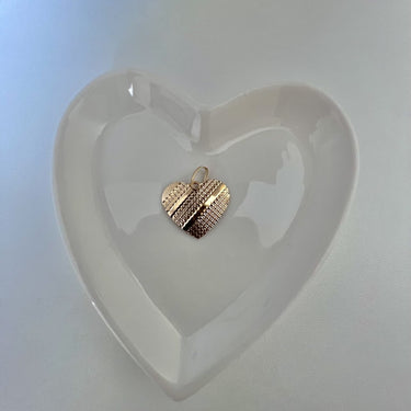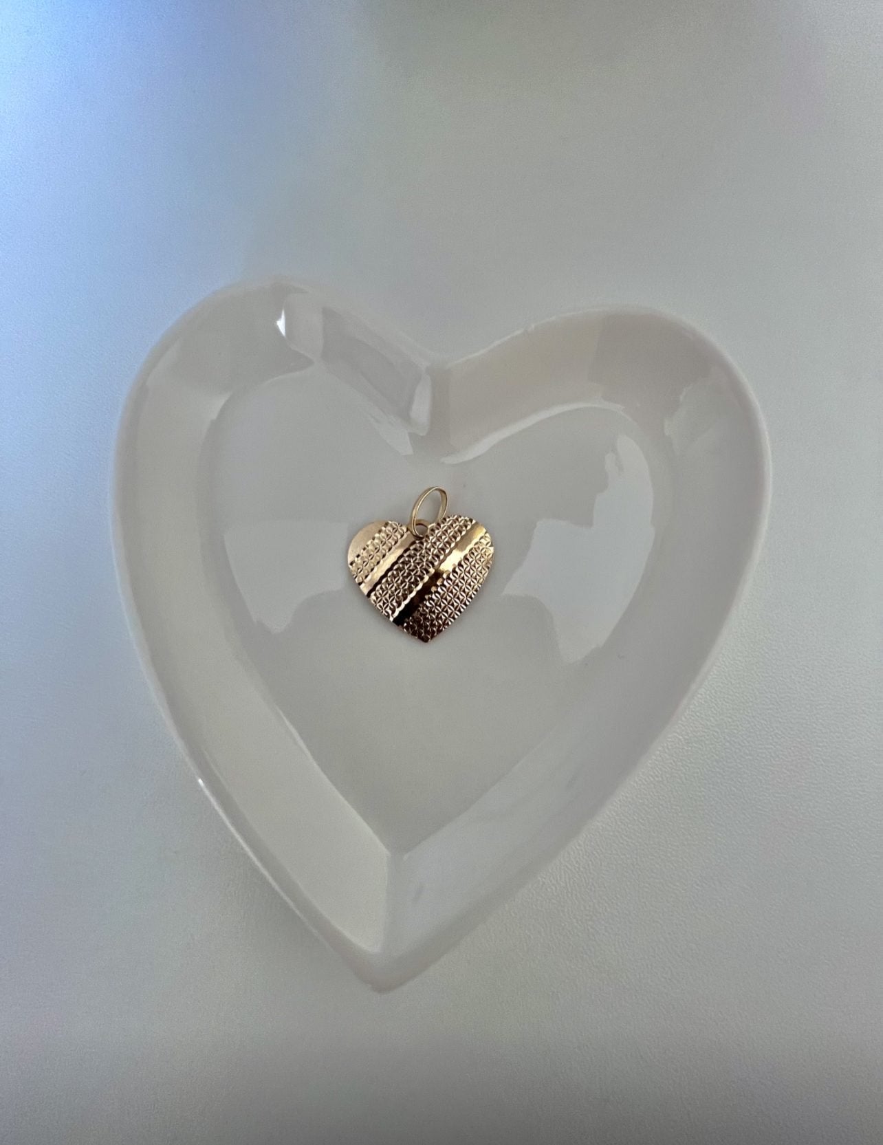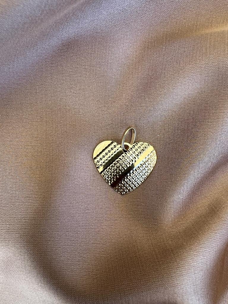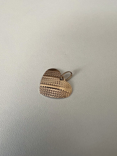 This dainty and timeless 18k gold heart pendant charm is the perfect addition to any jewelry collection. With its elegantly textured design and luxurious gold material, this pendant is sure to impress. Whether you’re looking for a special gift for a loved one or a beautiful piece to add to your own collection, this will do it. Enjoy the compliments!