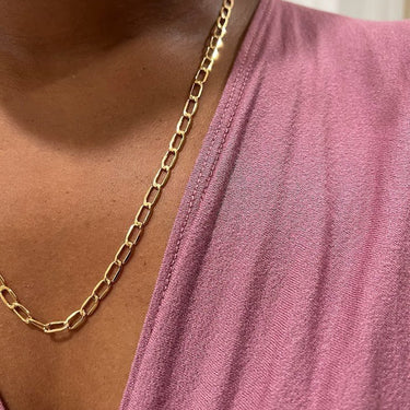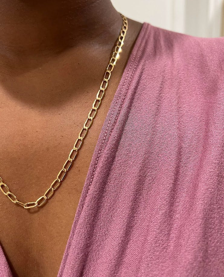 Always an elegant look with this distinctive, modern, paper clip designed chain necklace crafted with 18k gold. Perfect for everyday wear, fashionable, fun and an heirloom piece you will cherish.