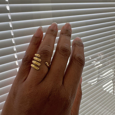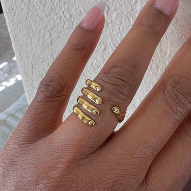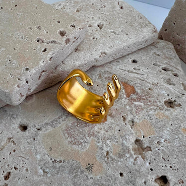 This one-size-fits-most ring is designed for comfort and versatility, offering a sleek, adjustable fit that complements any hand shape. Its stunning gold-plated finish and waterproof, tarnish-resistant properties ensure it maintains its beauty for years to come, making it perfect for everyday wear or special occasions.