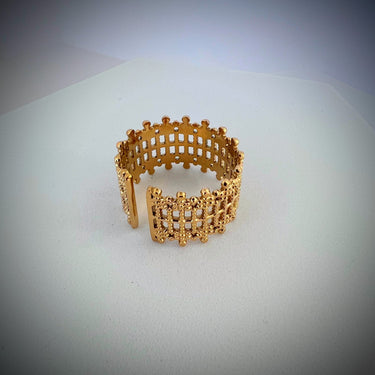 Crafted from high-quality stainless steel and plated with a rich 18K PVD gold finish, this ring is not only a symbol of elegance but also durability. The textured surface and matte crown-like elements offer a bold, yet timeless aesthetic, perfect for those who appreciate sophisticated and unique jewelry.