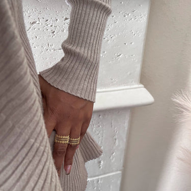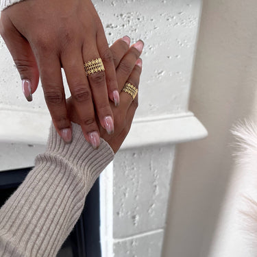 Whether worn as an everyday statement or for a special occasion, the Lyra Textured Open Ring will elevate any outfit with its commanding presence and luxurious charm. Waterproof and tarnish-resistant, it’s built for lasting wear while maintaining its radiant shine.