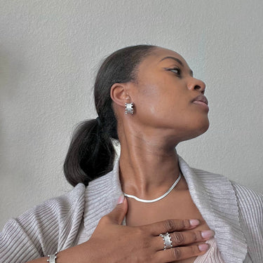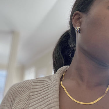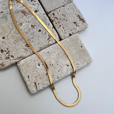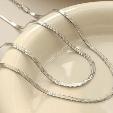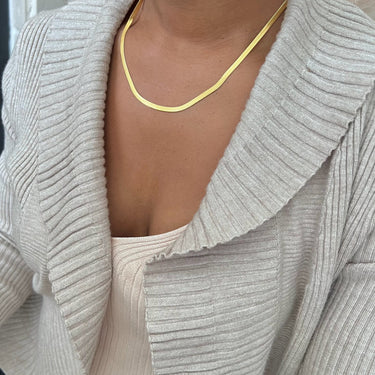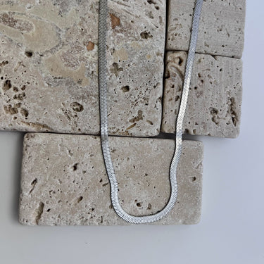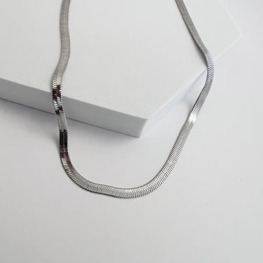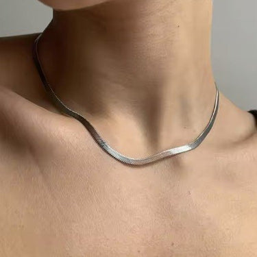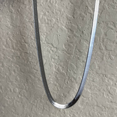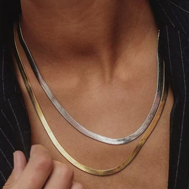 Embrace sleek elegance with the Solara Herringbone chain, a classic yet captivating chain designed to elevate any outfit. This chain features a smooth, flat herringbone pattern that lays beautifully on the neckline, reflecting light with a radiant glow. It’s available in silver and 18k gold plated over stainless steel. Its tarnish-free and hypoallergenic qualities ensure that it retains its shine and comfort, making it a perfect staple for both everyday wear and special occasions.