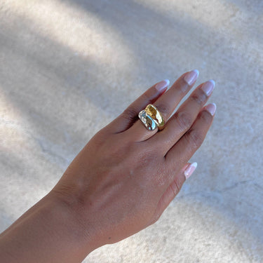 Introducing our stunning 18k gold plated two tone bypass ring- the perfect addition to any jewelry collection. Its design features a unique bypass style, crafted from high-quality stainless steel. The two-tone design adds a touch of elegance and sophistication, making it the perfect accessory for any occasion. Our fashion rings are designed to be both stylish and comfortable, ensuring that you can wear them all day long.