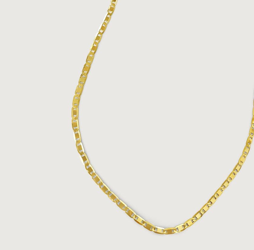 Make a statement with this timeless 2mm flat Pig Nose design Link Chain. One of our thinnest chains crafted with solid 18k gold and so has extra light-reflecting abilities, and shines that gleams on your neckline so it catches the light day-in day-out. It is truly an essential for any fine collection, an heirloom piece your collection needs to have. Sure to bling out your style no matter your outfit.