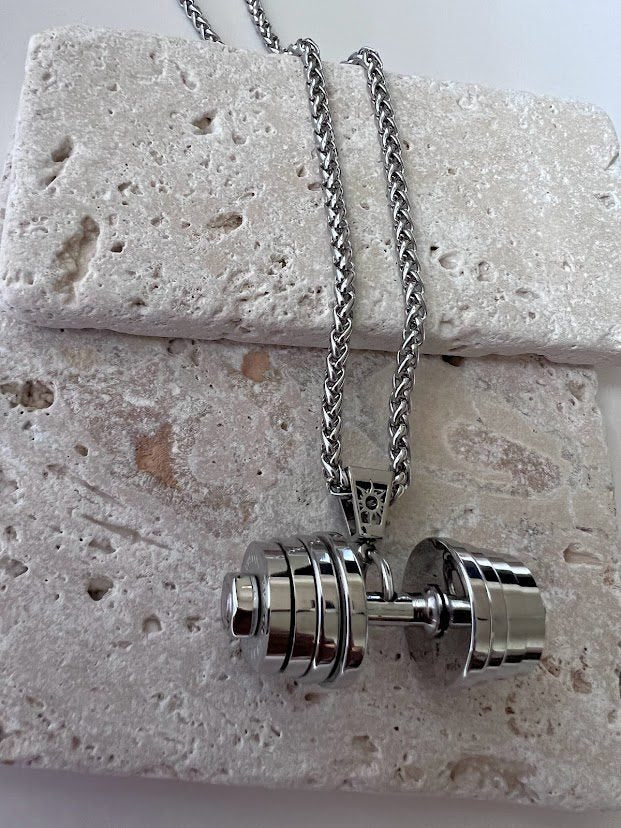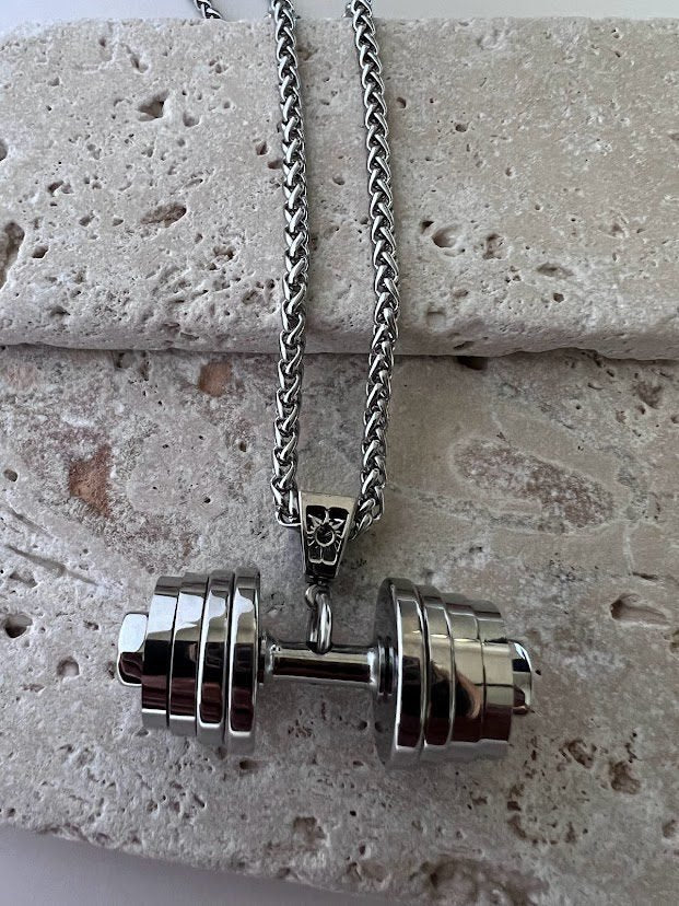 Design seamlessly blends function and style in this fitness motivational barbell chain necklace. Features four barbell rings and symbolizes strength, style, and endurance while staying a constant reminder to “Stay fit” but in style. A statement piece that makes your style stand out. Will make a great gift to a workout buddy, loved one, or, a just because gift. Gifting made easy with jewelry!