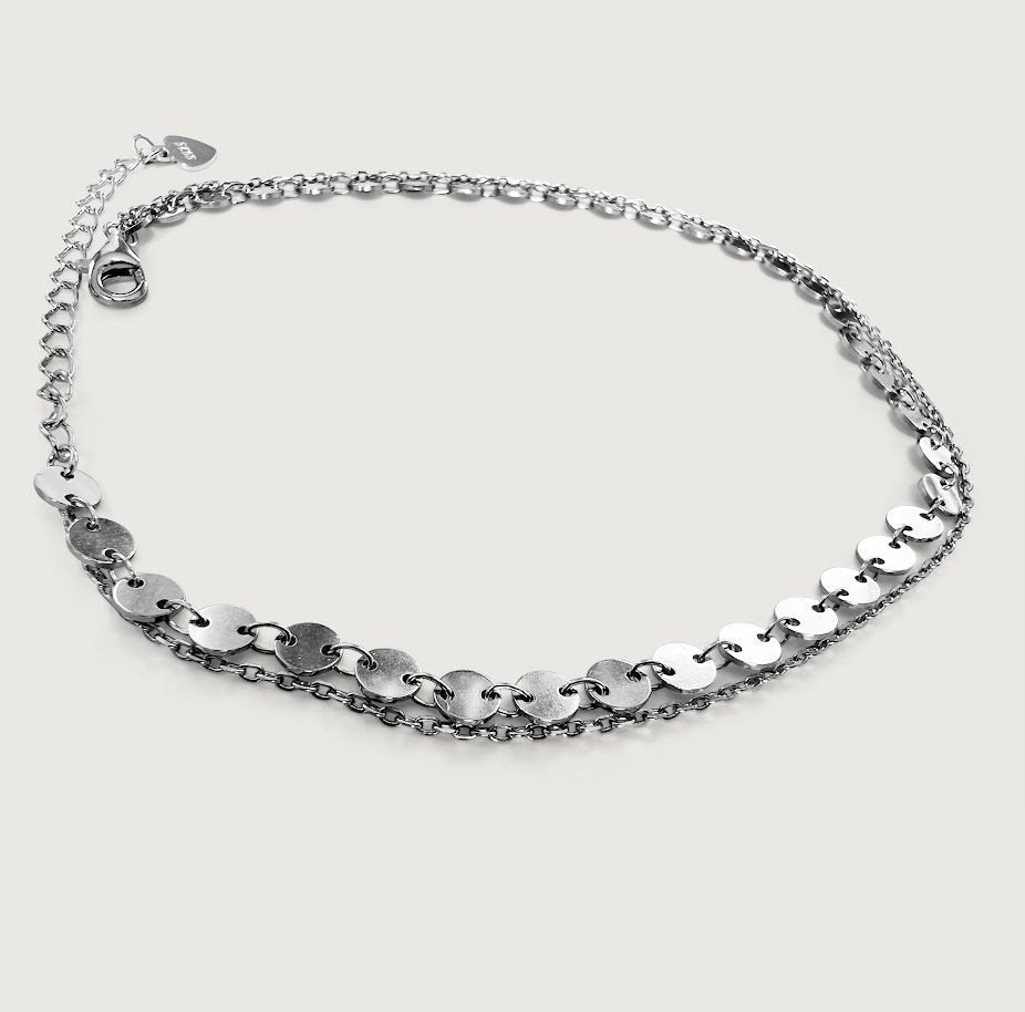 Aira Double Row Anklet in Sterling Silver