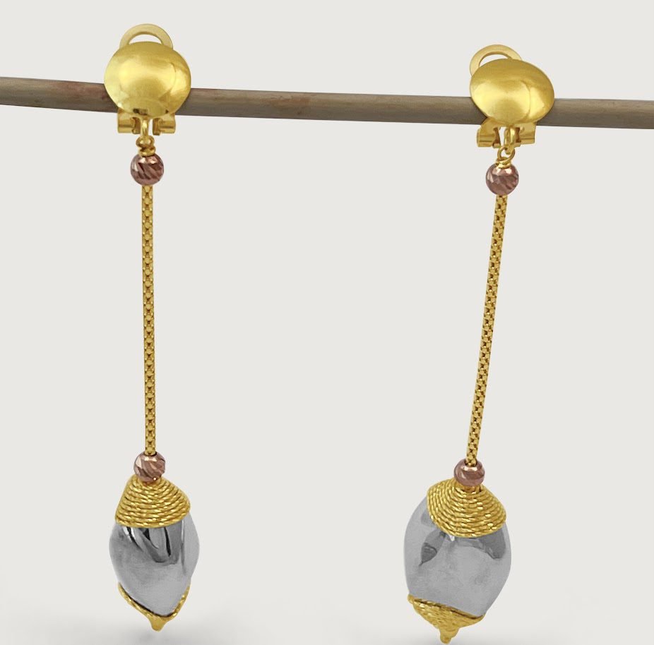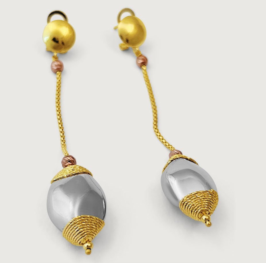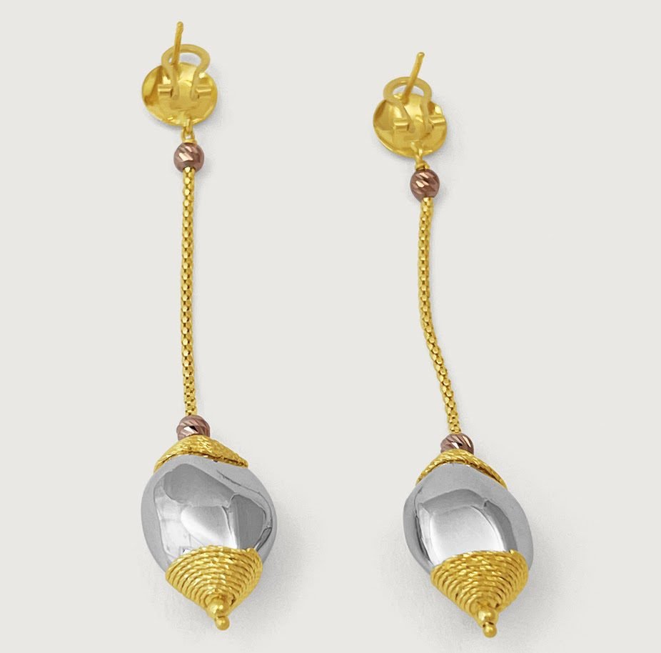 This unique and stunning linear drop earrings will speak glam about your style make you feel gorgeous. Designed from three tones of 18k yellow gold, white gold and rose gold. Earring secures with a latch back. Simple care will help you retain and protect your jewelry for many years to come.