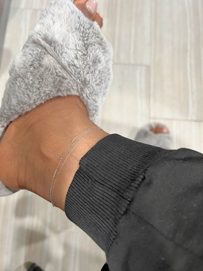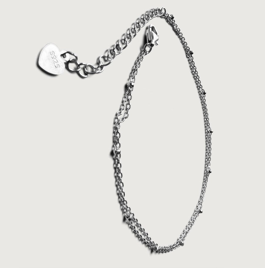 Ball Muse Double Chain Anklet in Sterling Silver