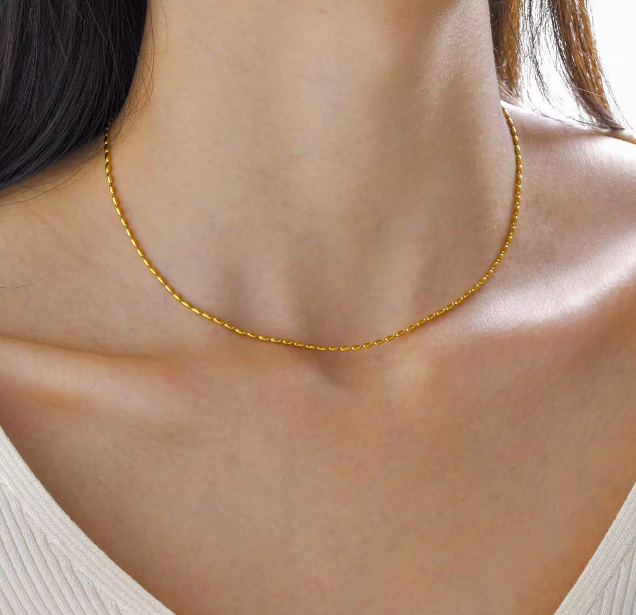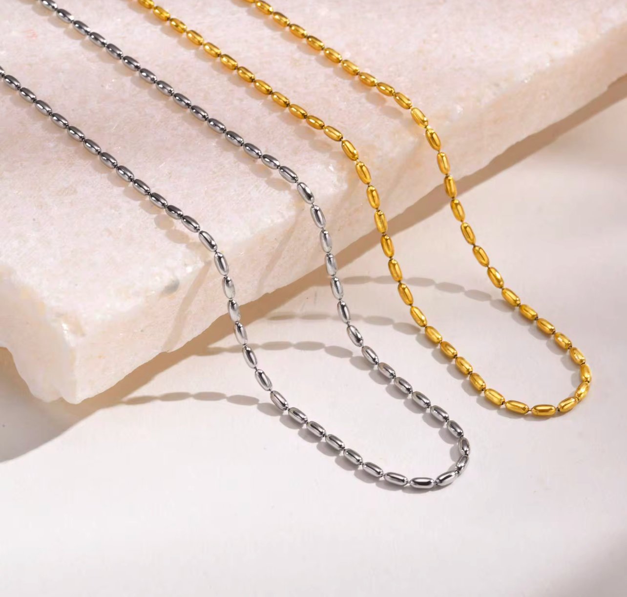 The Beaded Elegance Chain Necklace is a refined yet stylish piece, crafted from high-quality stainless steel for durability and a lasting shine. Available in both sleek silver and luxurious 18k gold-plated finishes, this chain features delicate beaded accents, adding a touch of texture and sophistication. Perfect as a standalone necklace or layered with other pieces, it’s a versatile accessory for any wardrobe. Elegant and timeless, this chain makes a beautiful addition to any jewelry collection.