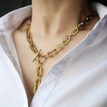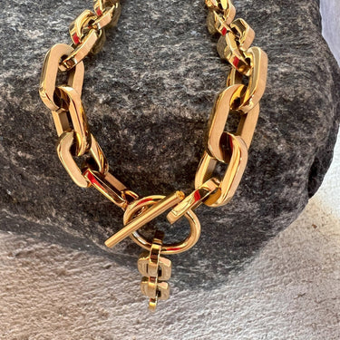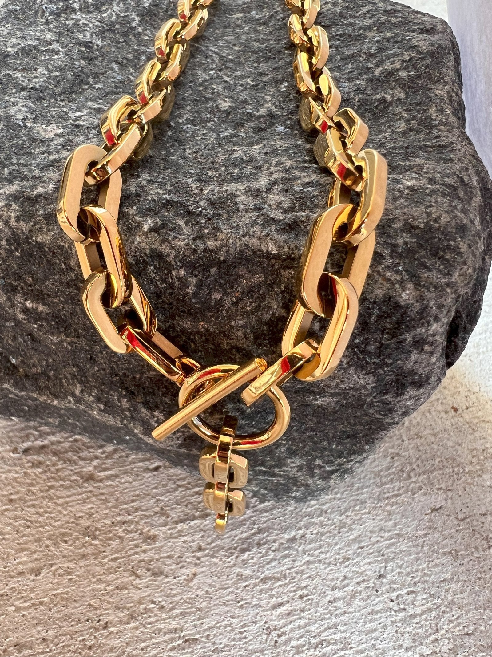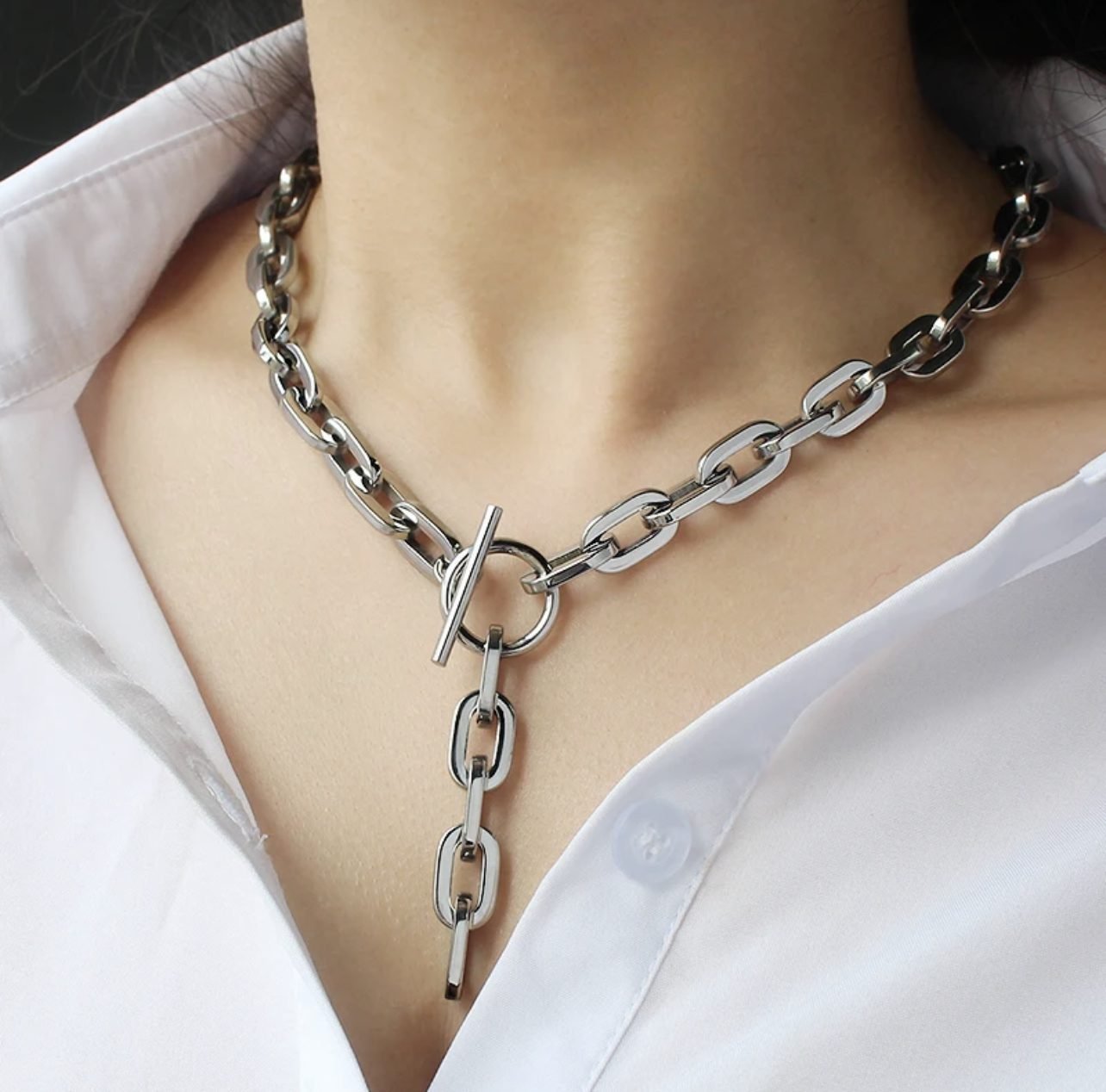 This bold and trendy necklace glows with light catching paper clip links made with 18k gold plated on high grade stainless steel; it is water proof, nickel and lead free. One of the hottest chain bracelets in the game! It weighs 83.5 grams but doesn’t feel that heavy when worn. Chain secures in place with a toggle closure. Add this necklace to all your favorite outfits! Whether you Layer up or wear it solo, you are sure to make a bold statement. You can pair this up with other silver or mixed tones jewels from our store. Also available in silver.