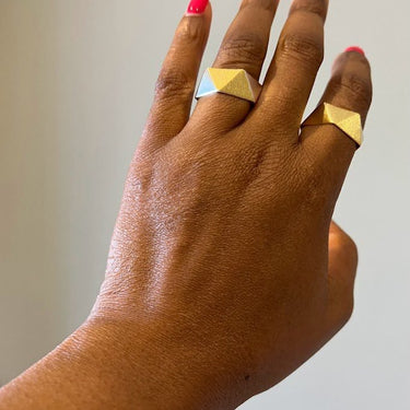 The Chunky sculptured open ring, one of our statement collections is uniquely textured with the perfect mix of a brush gold and smooth finish. Perfect for that bold statement and everyday style. This is sure to catch the light and standout in your ring stack.