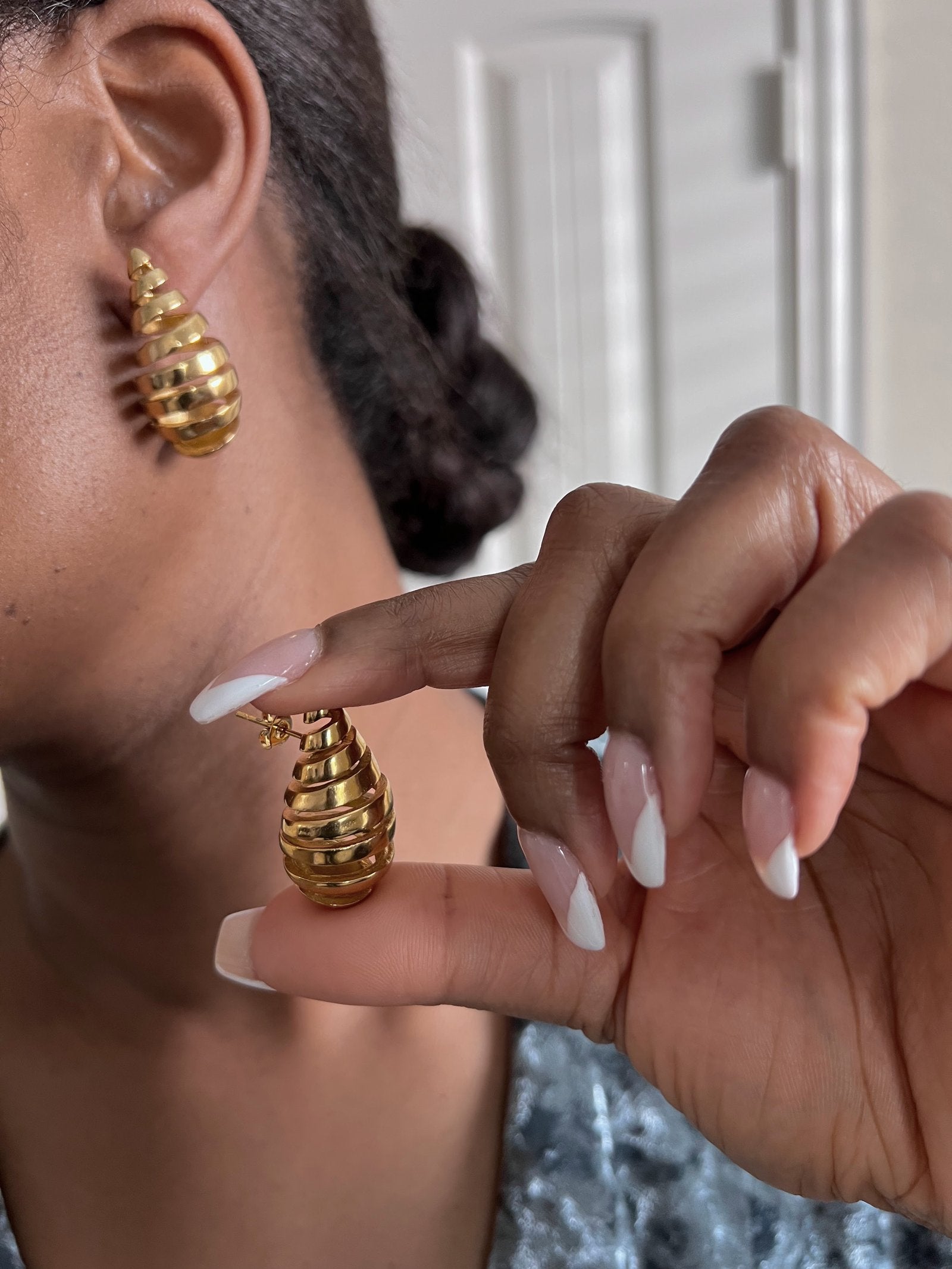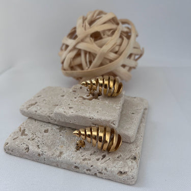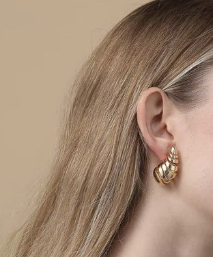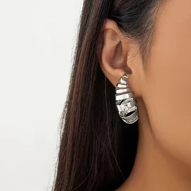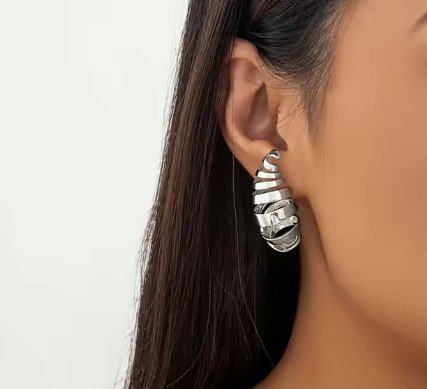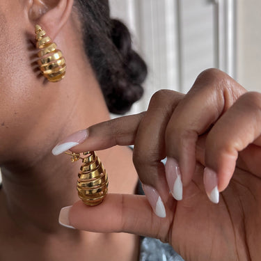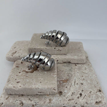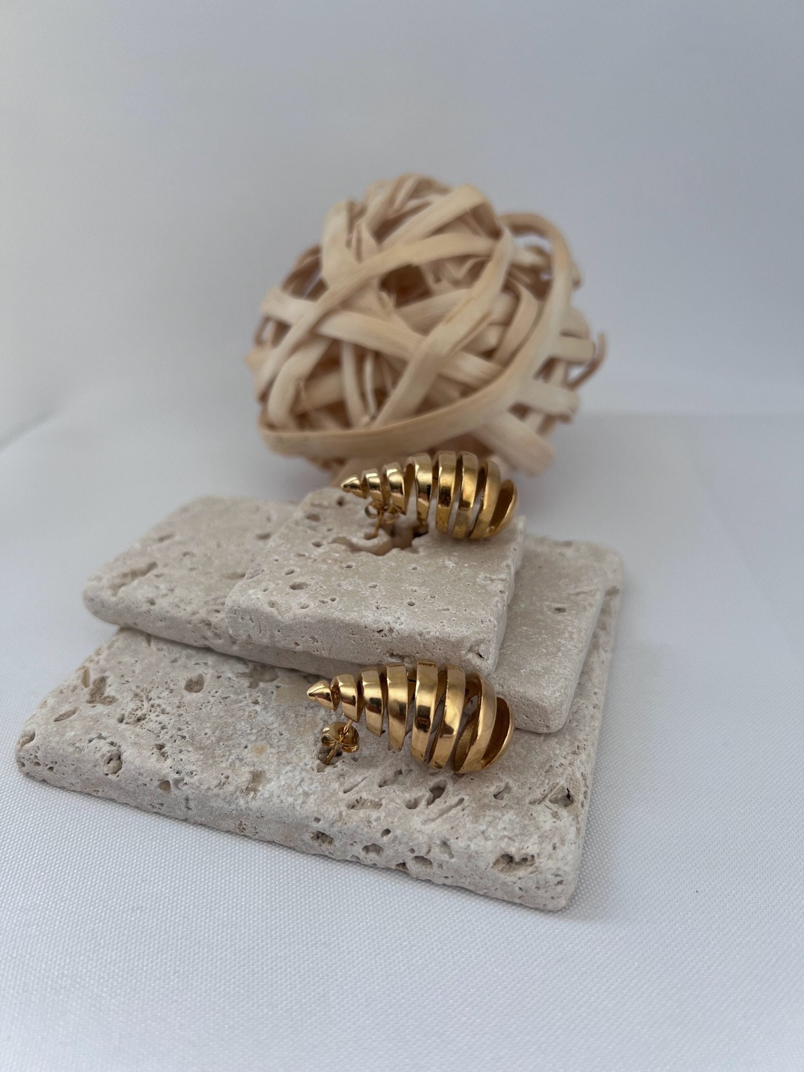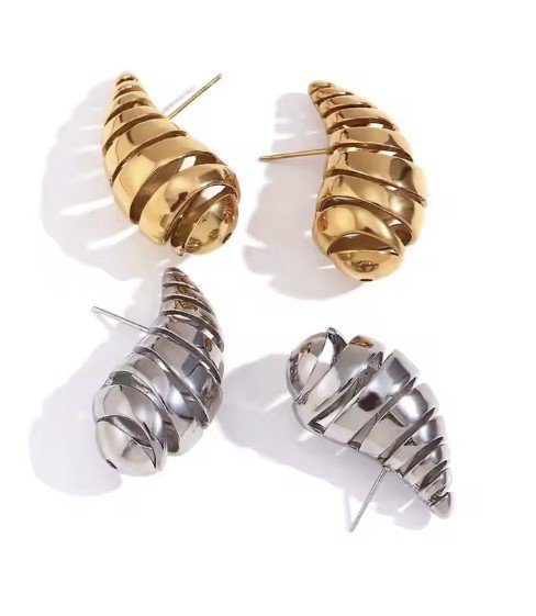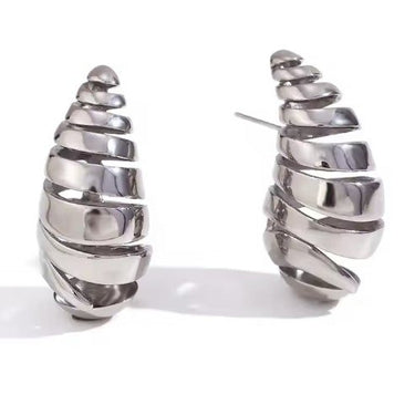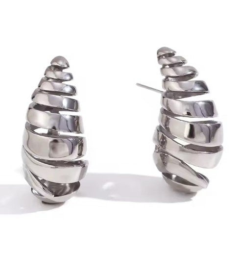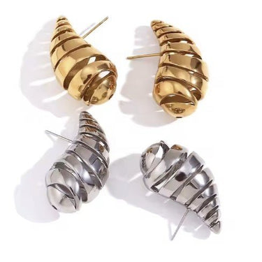A bold, artistic take on the classic teardrop shape. These earrings feature a striking narrow spiral design, adding a touch of modern elegance to your style. Available in both luxurious 18k gold-plated and polished silver finishes, the Ela Twist earrings are crafted from ethically sourced stainless steel, making them as durable as they are beautiful. Water, sweat, and heat resistant, they promise to retain their shine without discoloration or tarnishing. Hypoallergenic and gentle on sensitive skin, these earrings are the perfect statement piece for any occasion, seamlessly blending sophistication with an edgy twist.